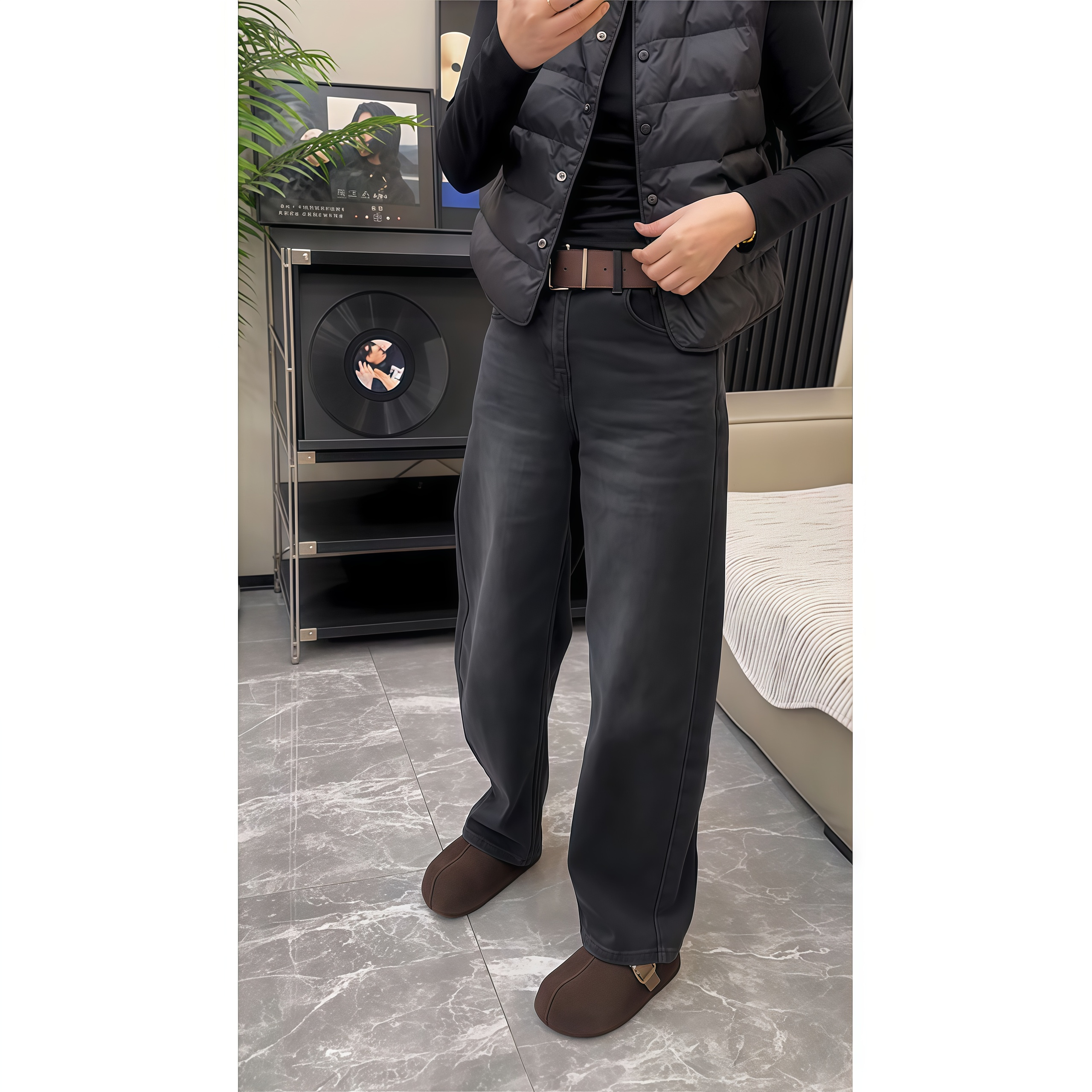 子 小个子宽松显瘦拖地裤 黑色高腰弯刀加绒牛仔长裤 女2025秋冬新款