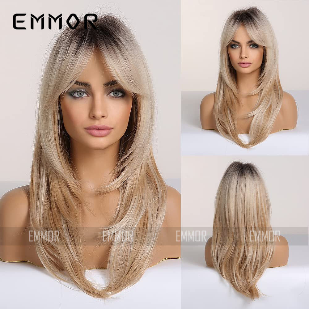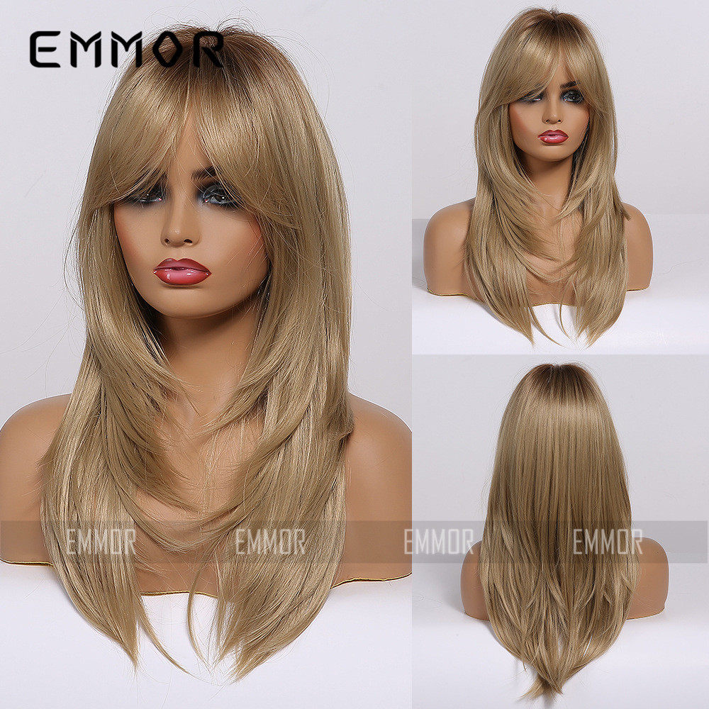 渐变金黑棕色热销款 多色全头套 中长直发发尾卷 多款 跨境新品