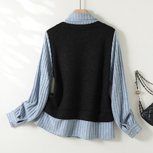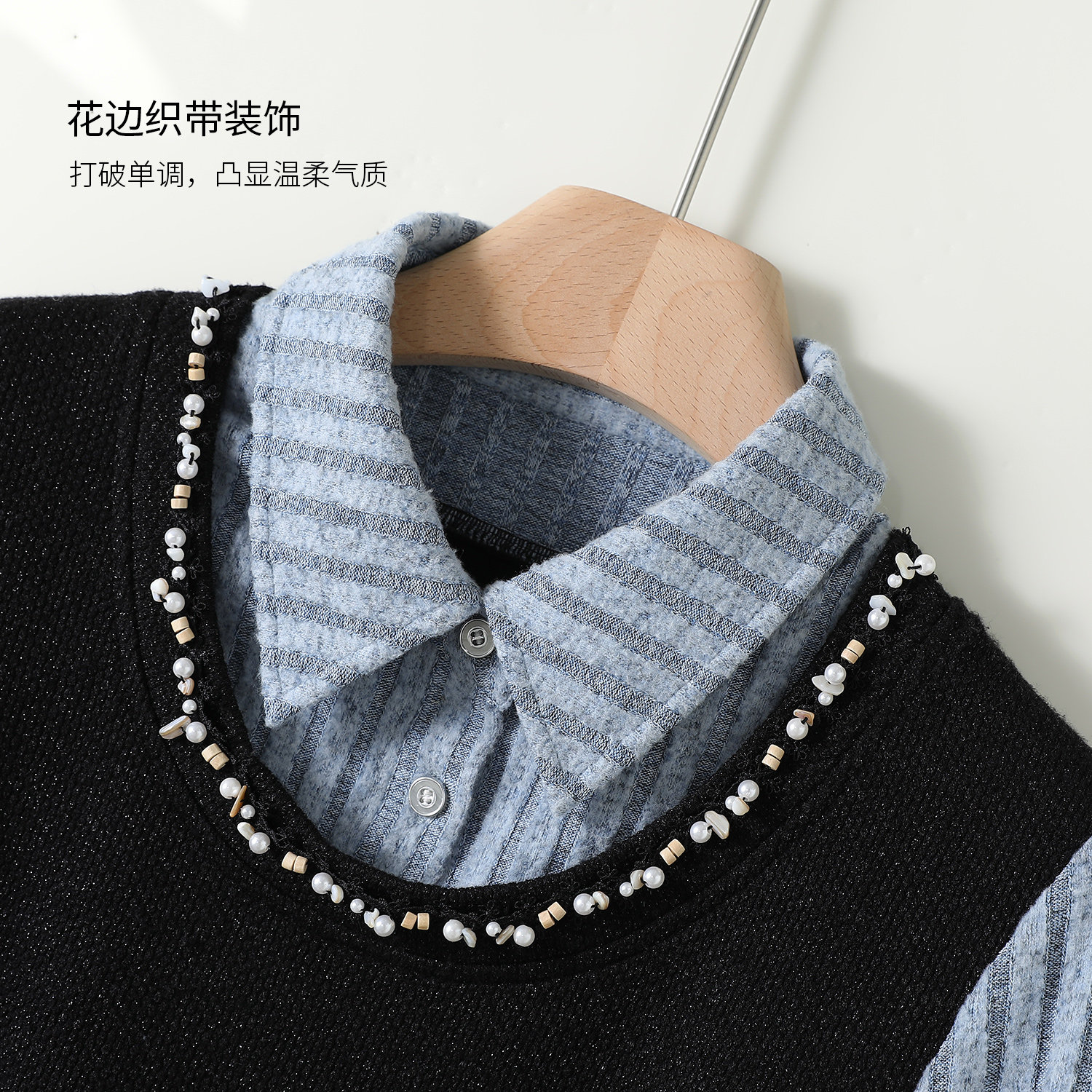 织带花边设计假两件拼接条纹针织衫 YBAI 新款 2025冬季 上衣女 亦白