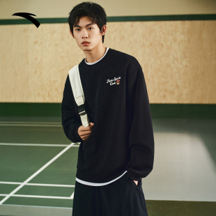 安踏情侣套头卫衣男女2026新款 落肩刺绣印花休闲百搭圆领运动上衣
