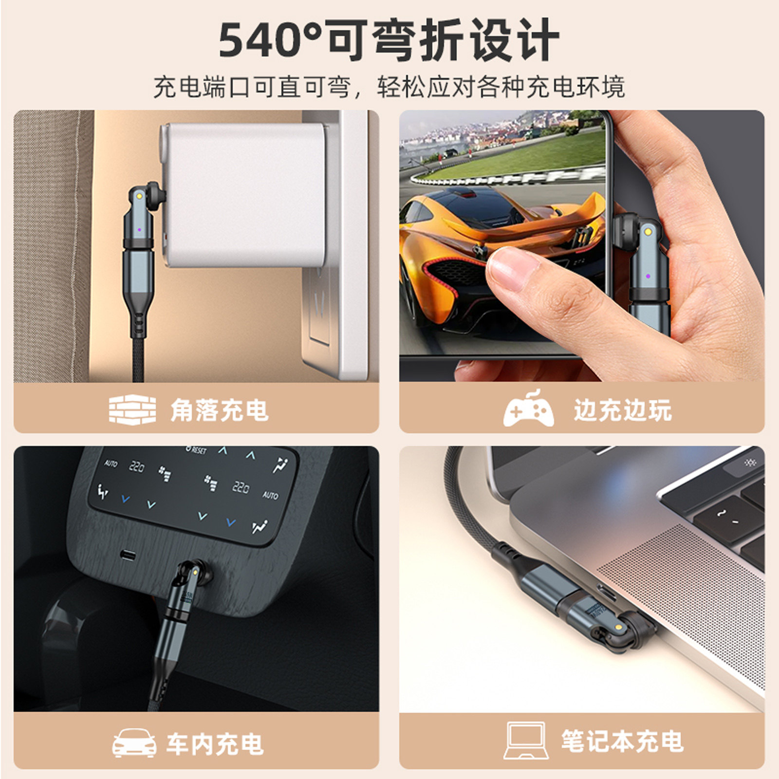 c充电数据传输转换头 17手机平板电脑180度多角度type 540度旋转pd快充240w转接头适用华为苹果iPhone15
