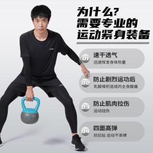 李宁跑步男运动套装 晨跑中考体育速干衣健身房训练服羽毛球服 春季