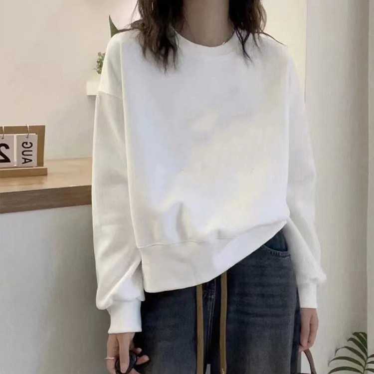 山东即墨100%纯棉卫衣女秋冬装 纯色加绒加厚休闲宽松显瘦外套 韩版