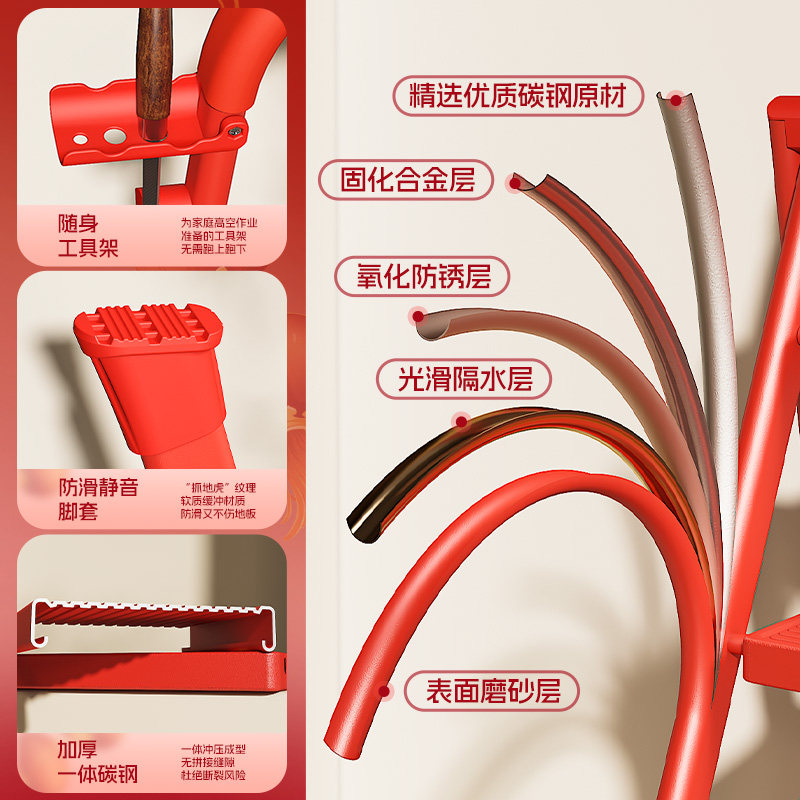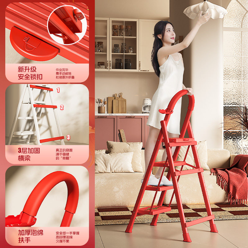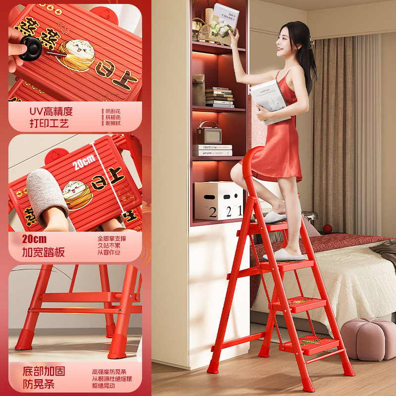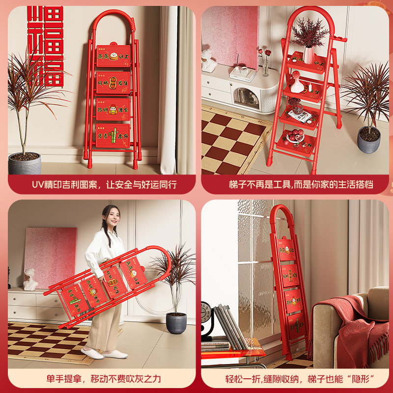 家用折叠乔迁之喜红梯子伸缩楼梯人字梯加宽加厚爬梯台阶步梯搬家