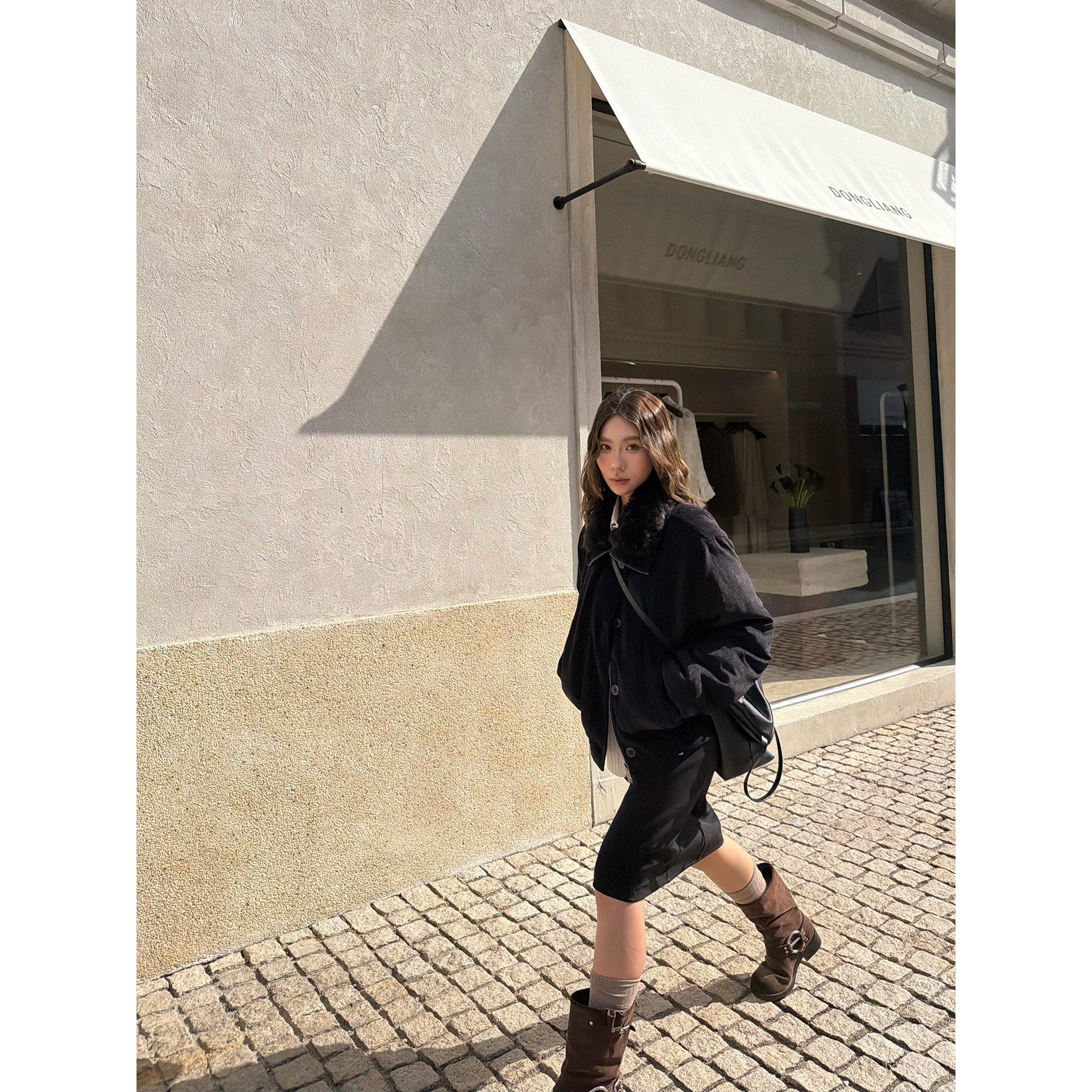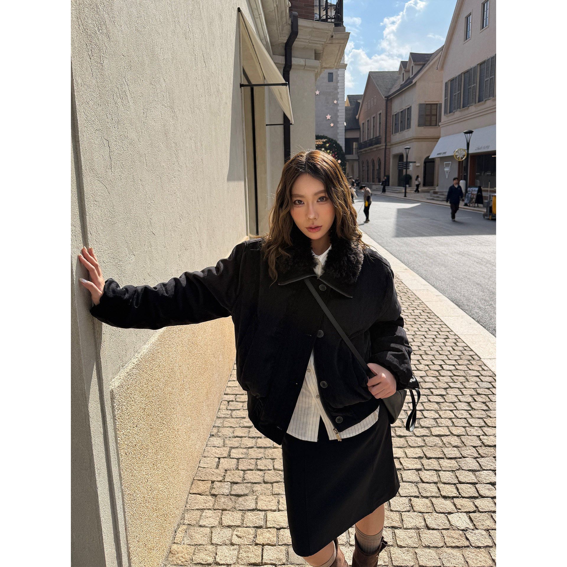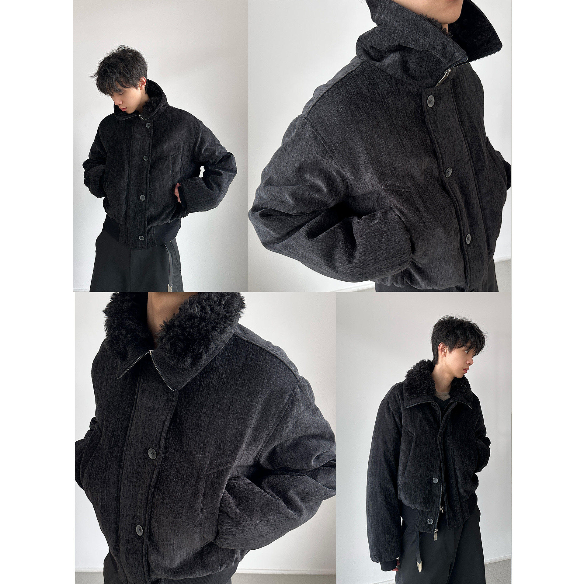 力量廓形 H1c 棉服外套 翻领毛领雪尼尔廓形短款 优雅氛围 雪夜