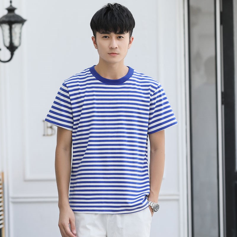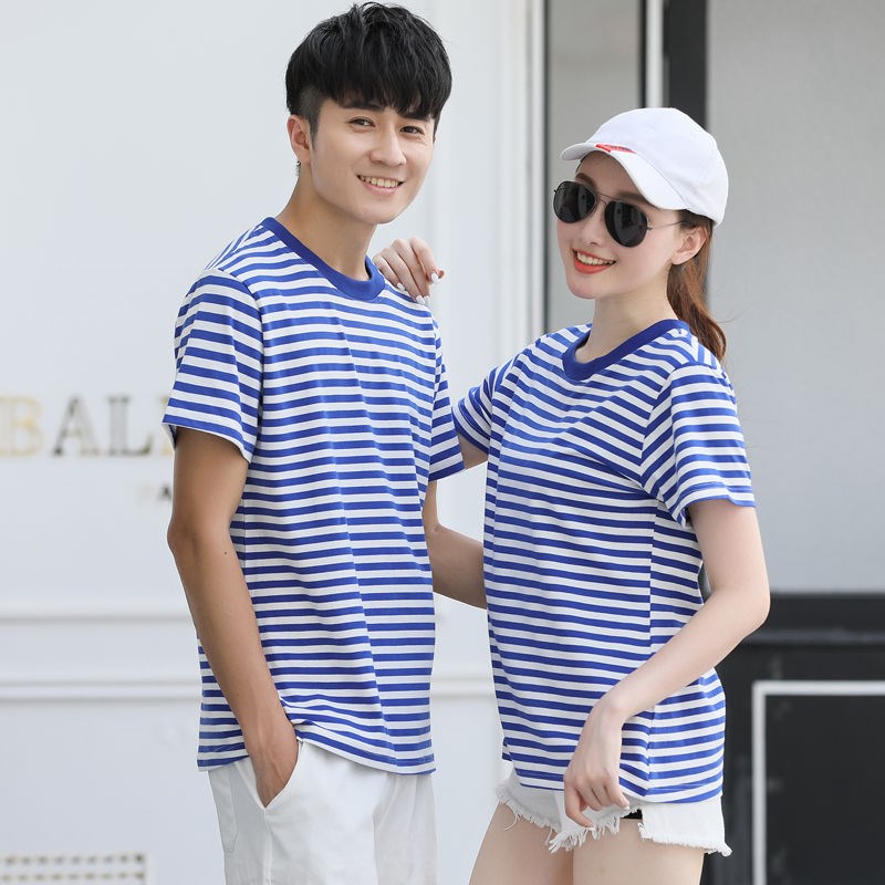 定制 纯棉圆领t恤蓝白条纹幼儿园儿童演出班服大码 梅花海魂衫 短袖