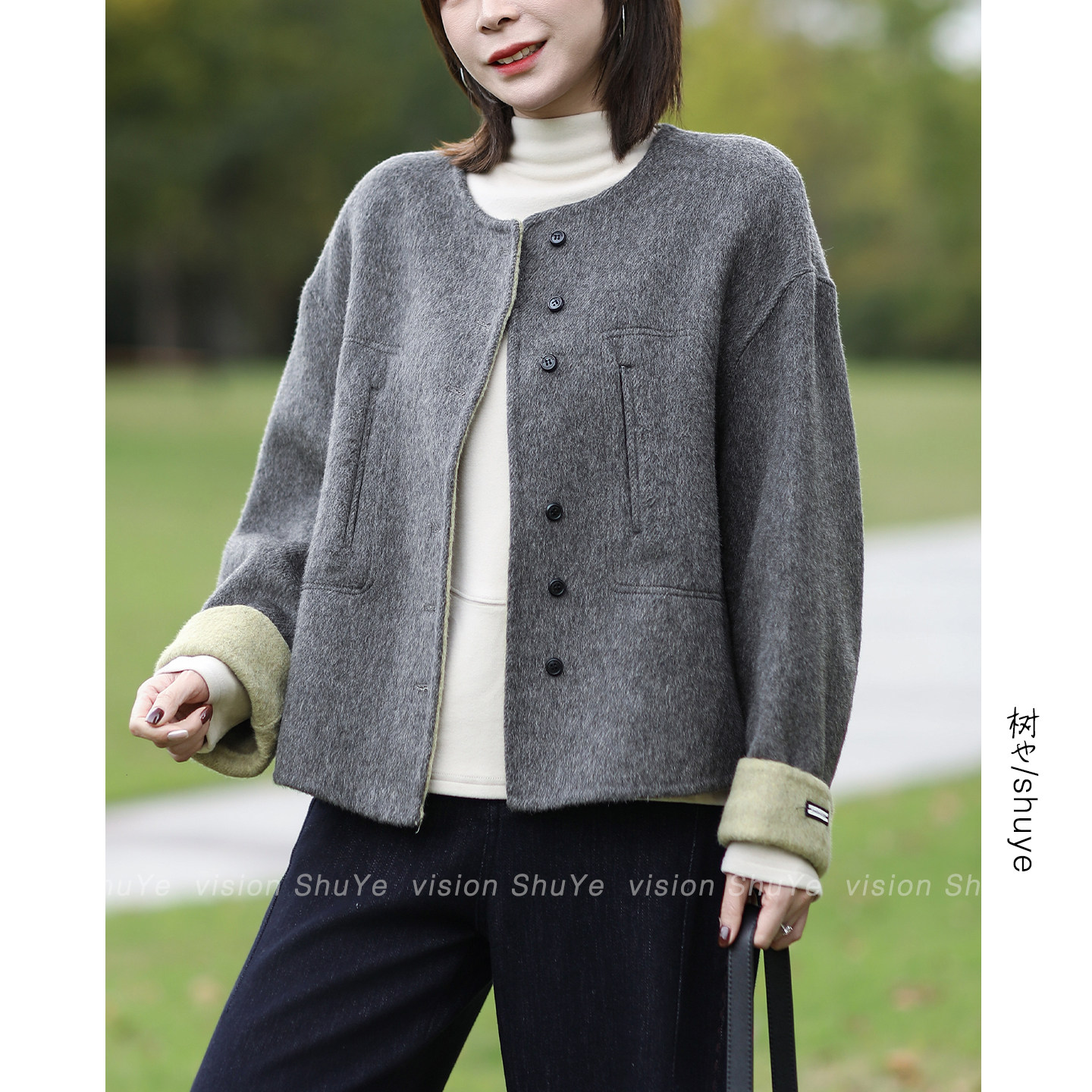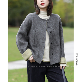 双面羊绒大衣女中长款 炭灰色韩系宽松高端羊毛呢外套 2025秋冬新款