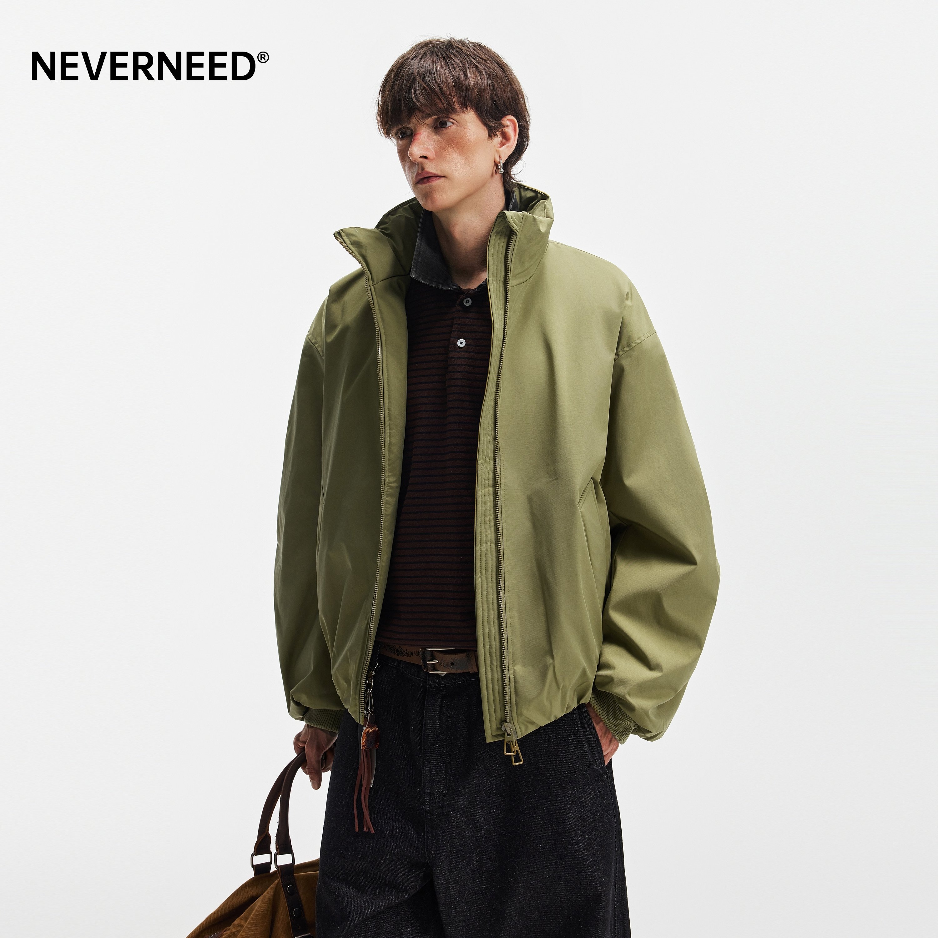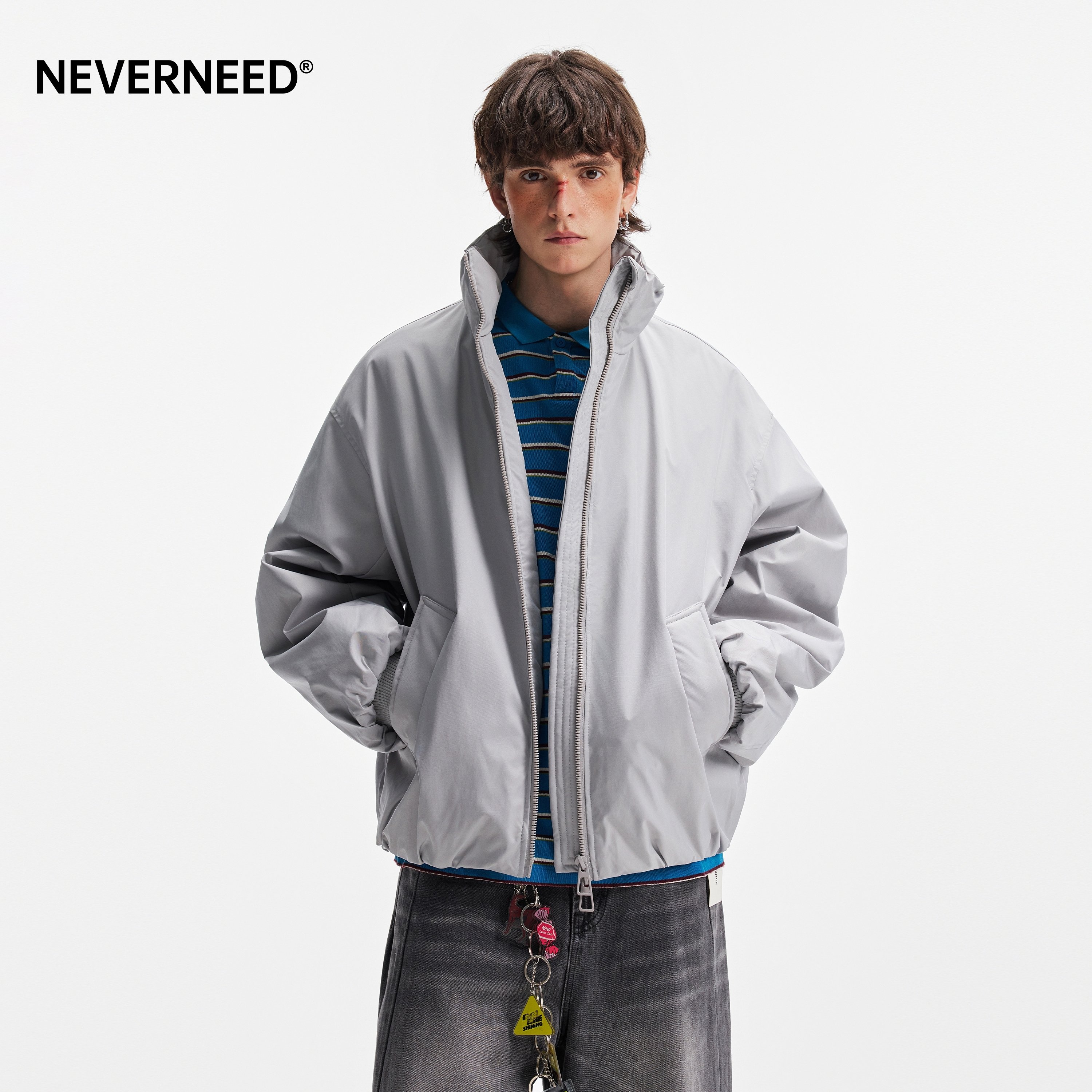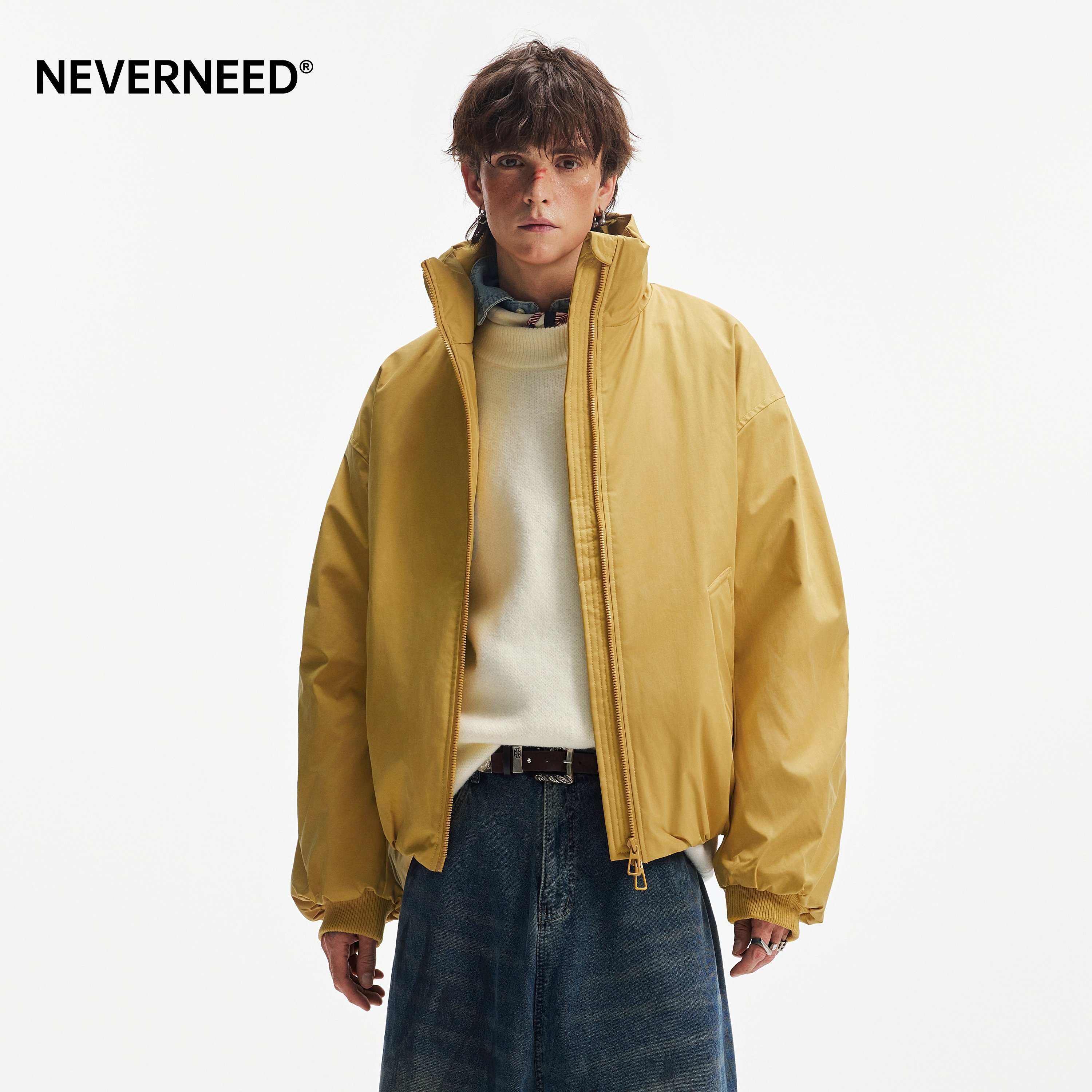 cleanfit情侣装 美式 保暖外套 立领棉衣男女冬季 NEVERNEED纯色短款