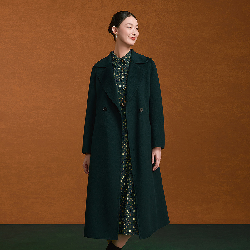 太平鸟甄绒系列西西里浴袍大衣2.0羊绒大衣女25新款 双面毛呢外套