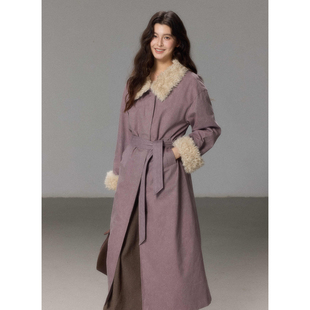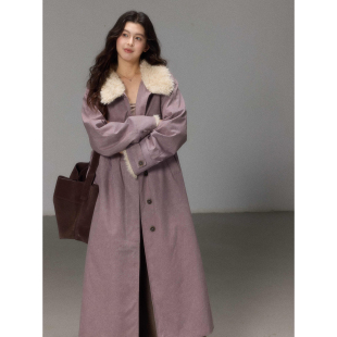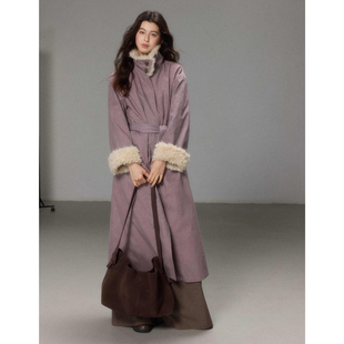 贰羊设计 高级感气质仿羊羔毛立领夹棉风衣女宽松棉服外套 归莳