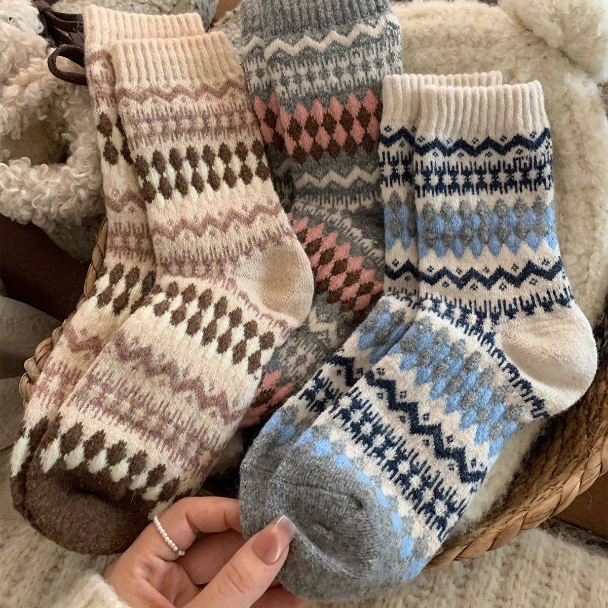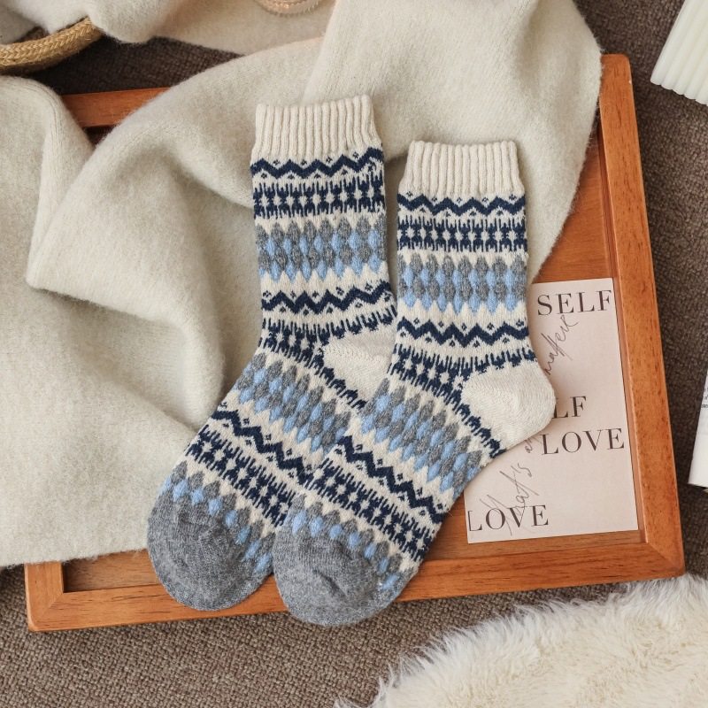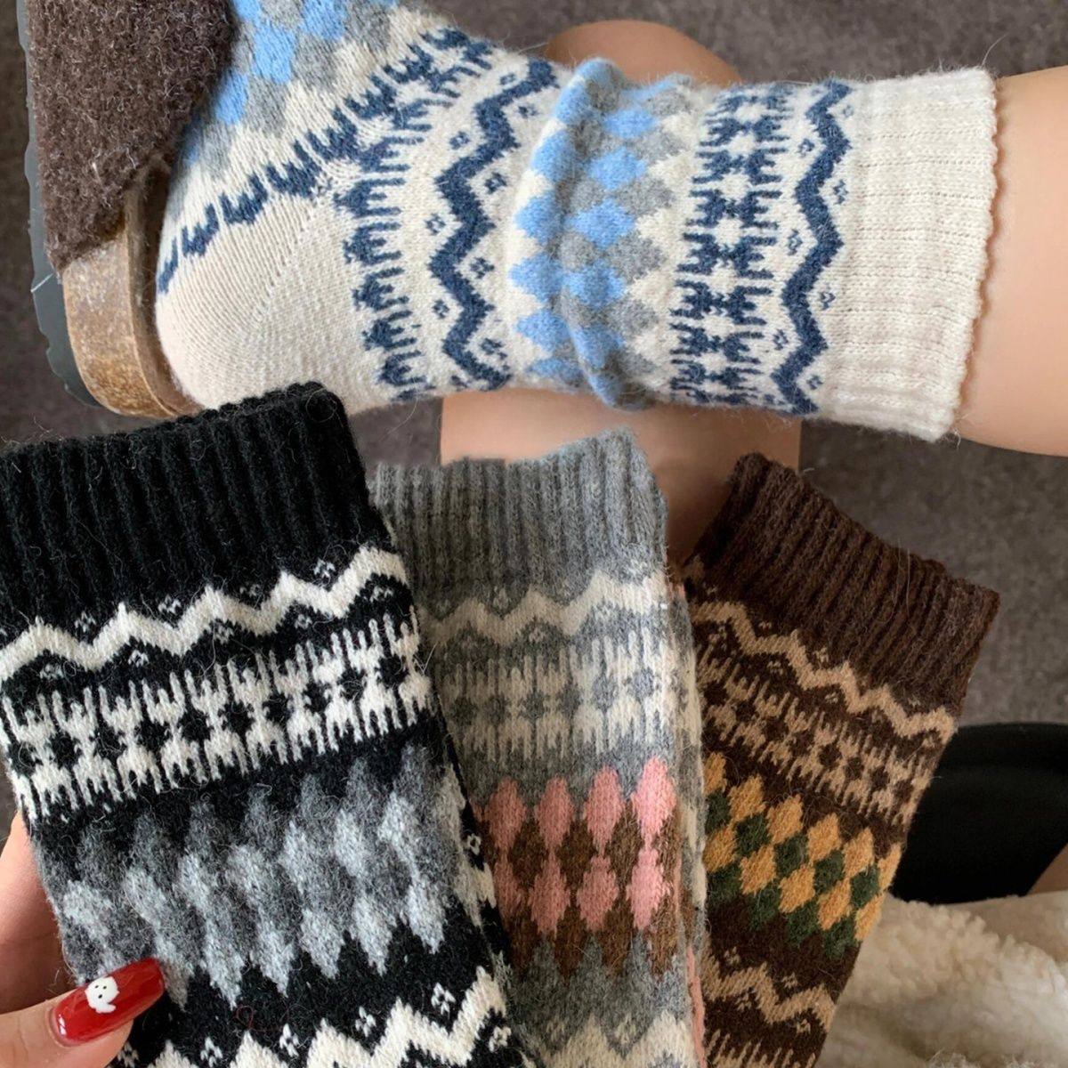复古费尔岛袜子女秋冬季 中筒袜加厚保暖冬天民族风长筒百搭堆堆袜