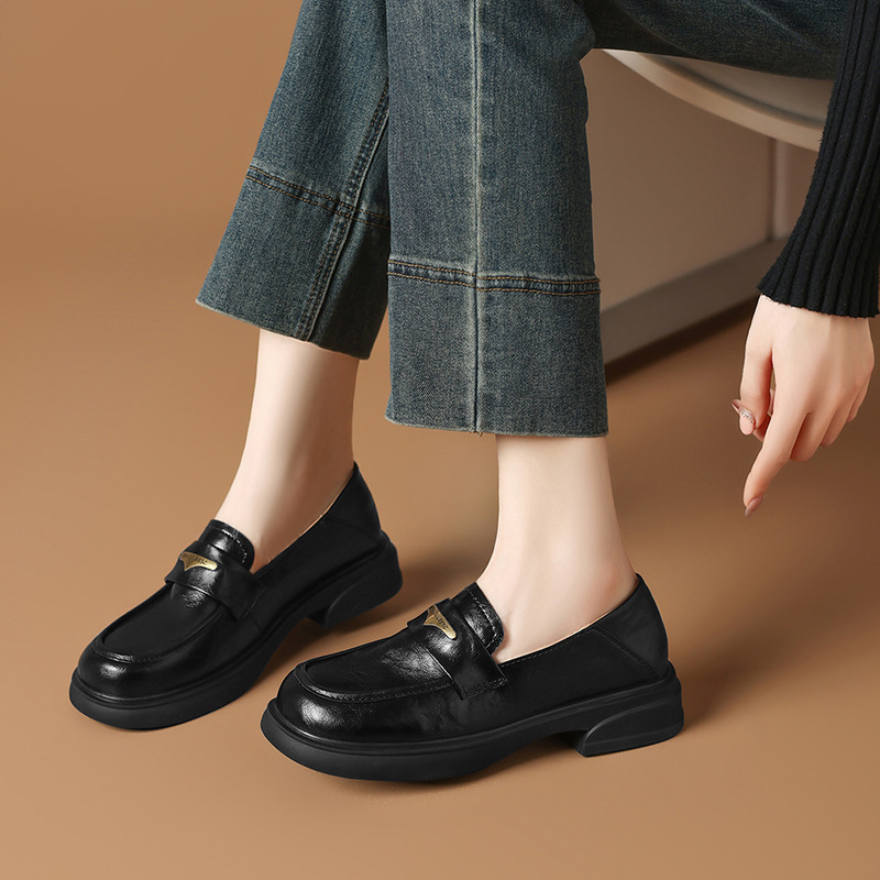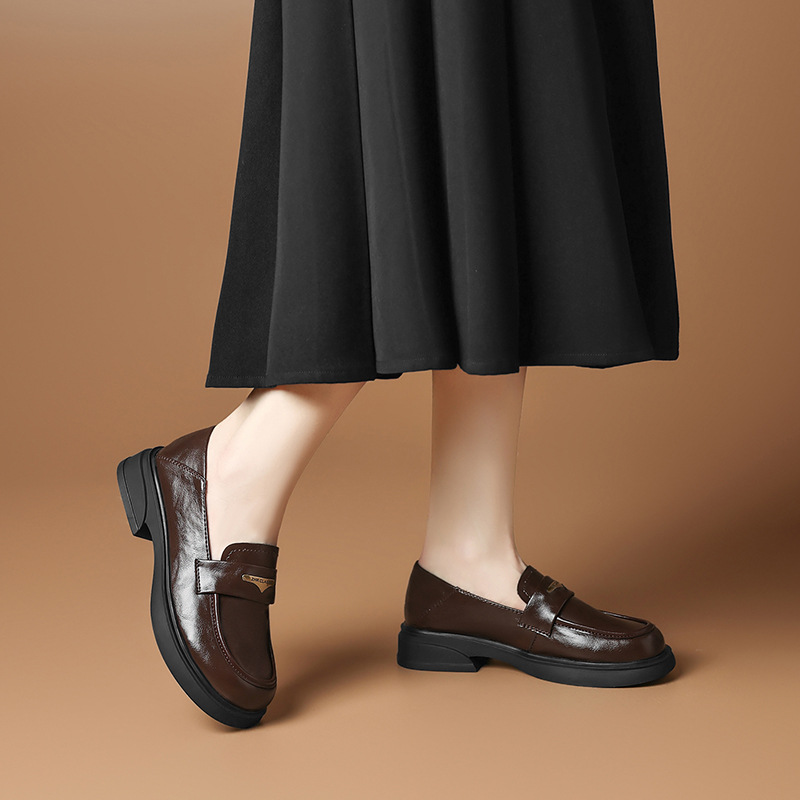 时尚 洋气女鞋 粗跟乐福鞋 百搭小皮鞋 2025新款 ZHR则则复古中口单鞋