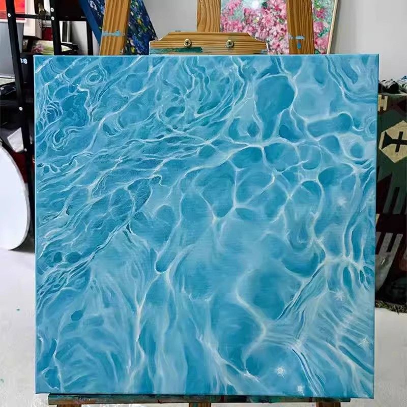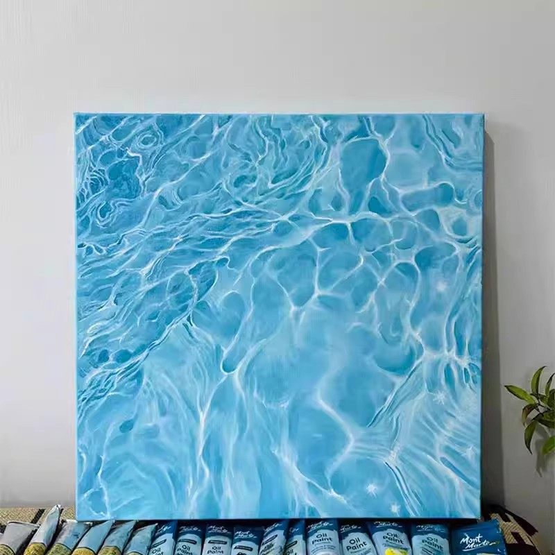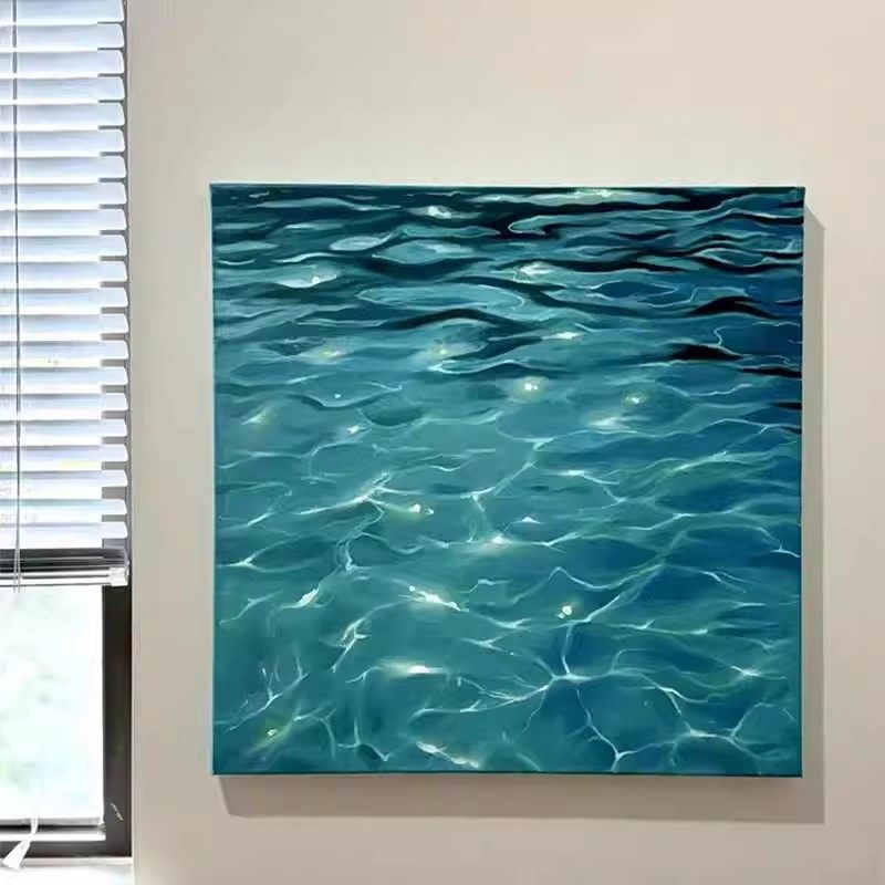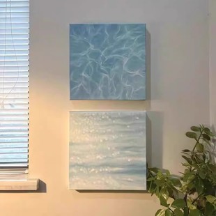 清澈 饰画成品仿油画风景极简方形高级感卧室客厅摆挂画 海蓝色装