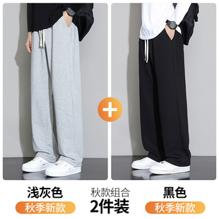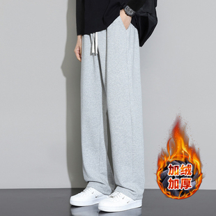 潮流宽松男生灰色直筒长裤 裤 加绒加厚休闲运动卫裤 秋冬季 子男款