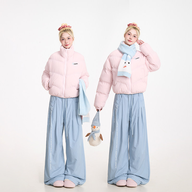 直筒阔腿休闲裤 NERESUM美式 女秋冬加绒户外运动裤 裤 字母印花工装