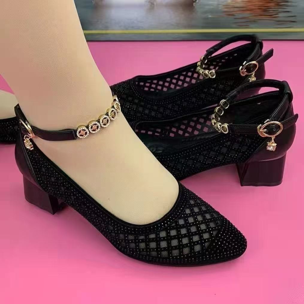 真皮妈妈浅口单鞋 中年舞鞋 女镂空凉鞋 新款 网面 2025夏季 品牌鞋