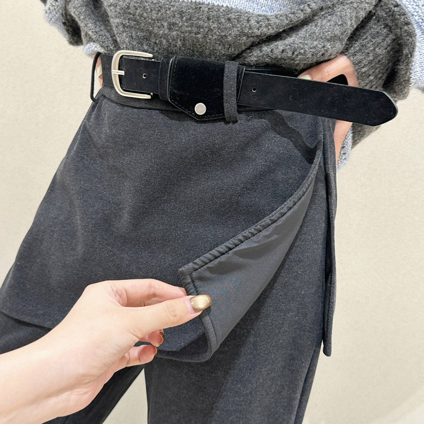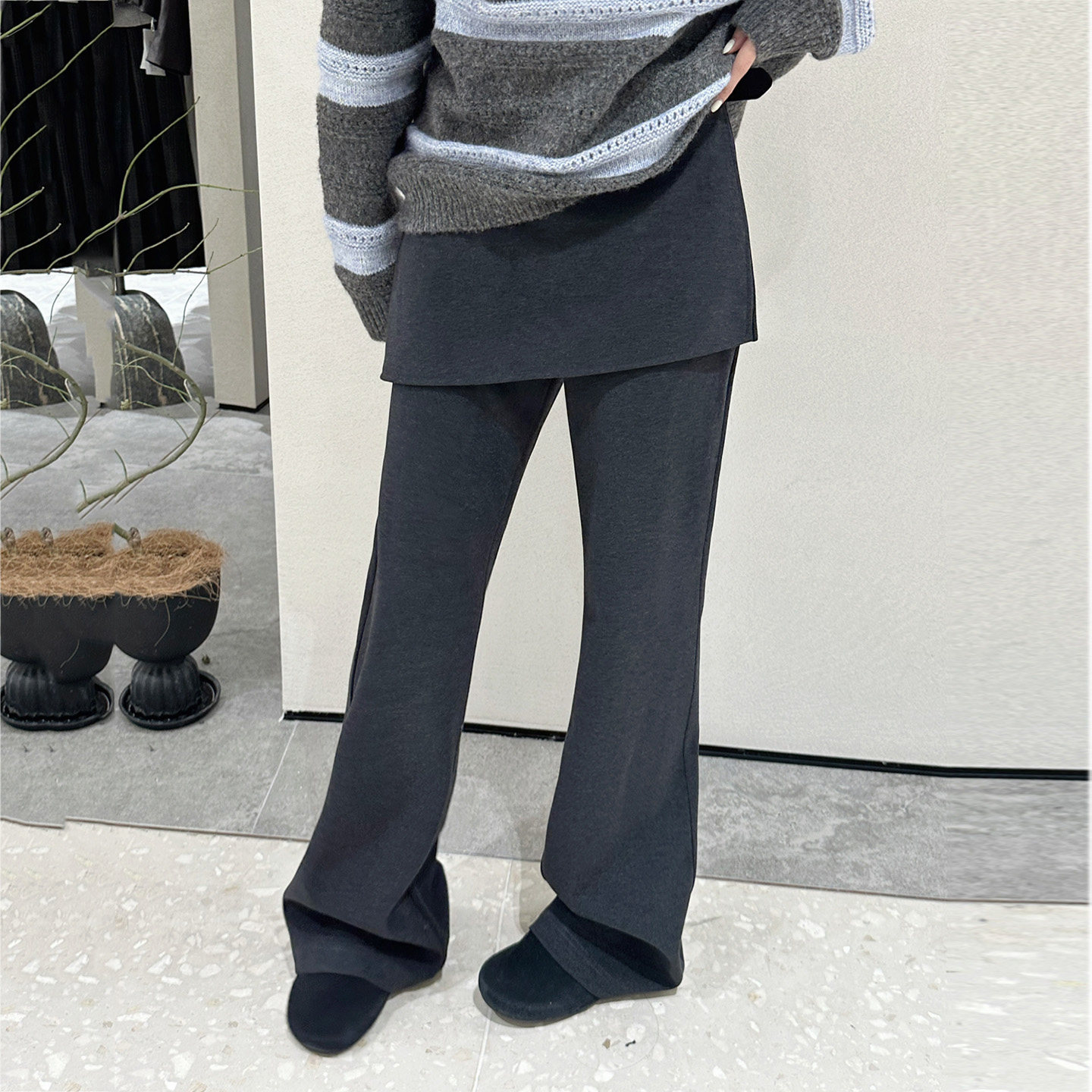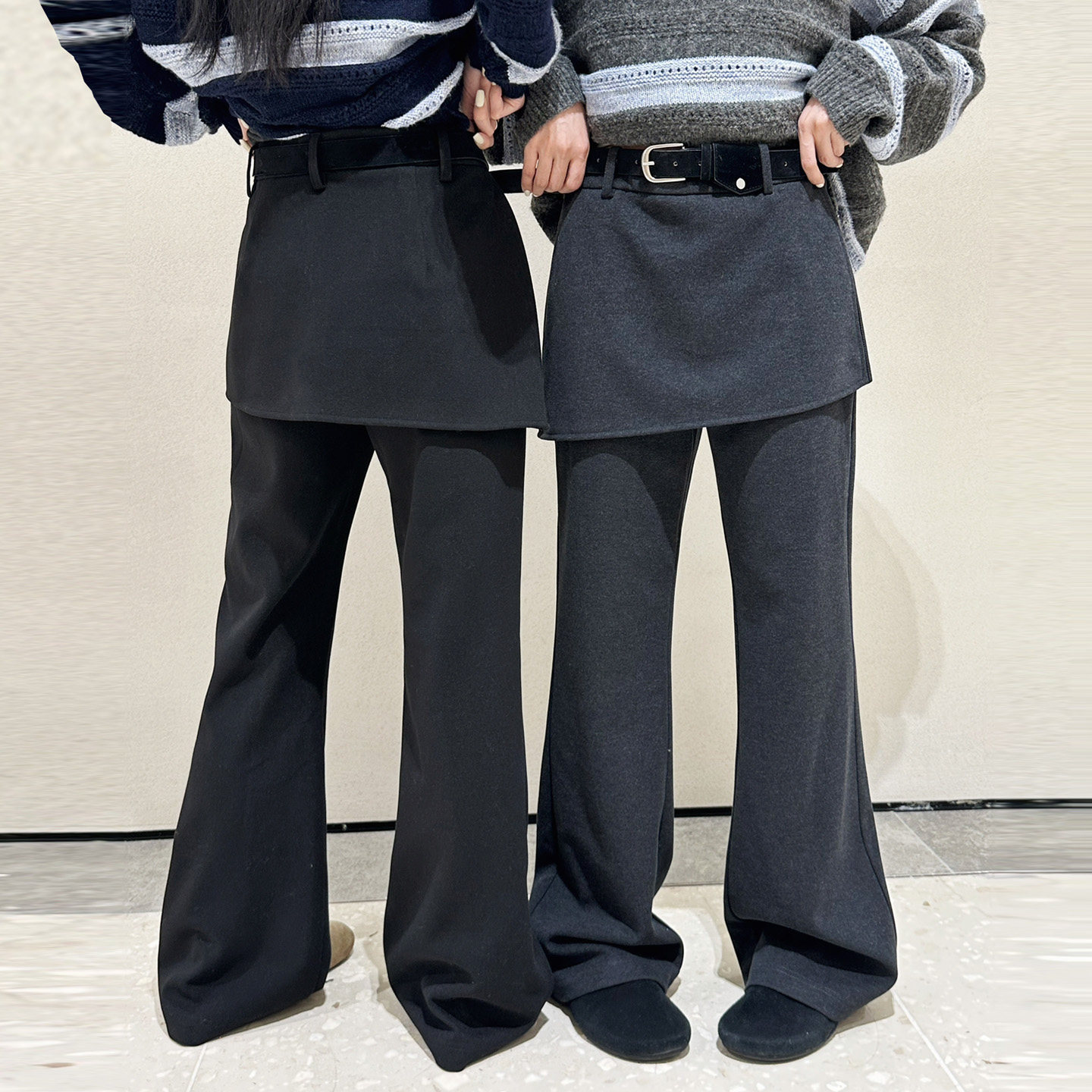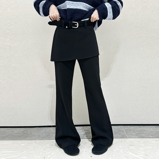 直筒喇叭裤 带屁帘拼接假两件裙裤 带腰带窄版 女冬季 加绒加厚微喇裤