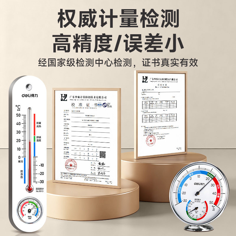 得力机械温湿度计精准家用室内室外电子温度计高精度数显温度表