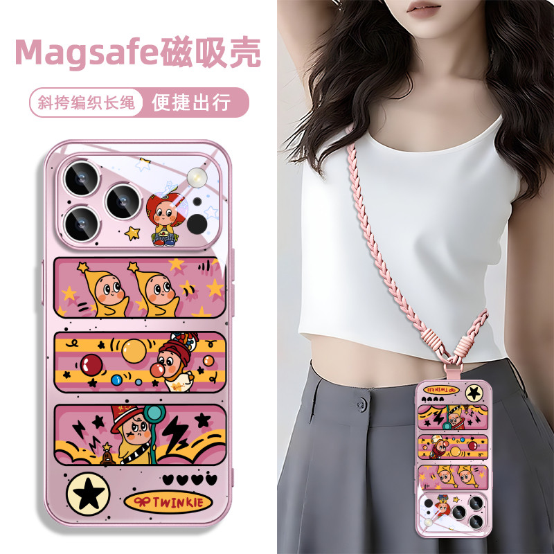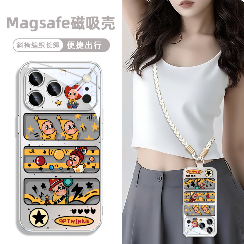 泡泡玛特星星人适用IPHONE16苹果17promax磁吸手机壳橘橙色15玻璃magsafe充电air独特好看 13超火14秋冬plus