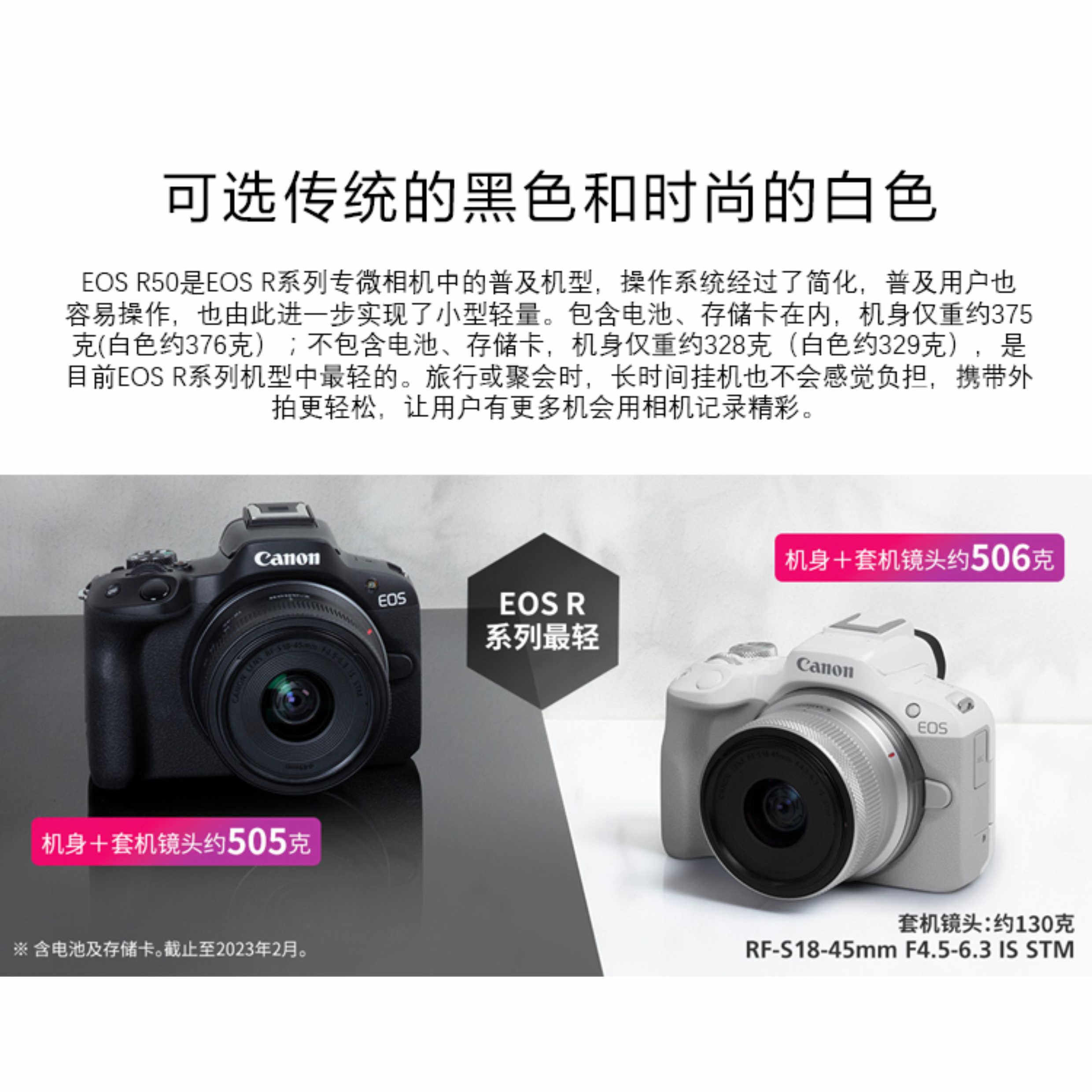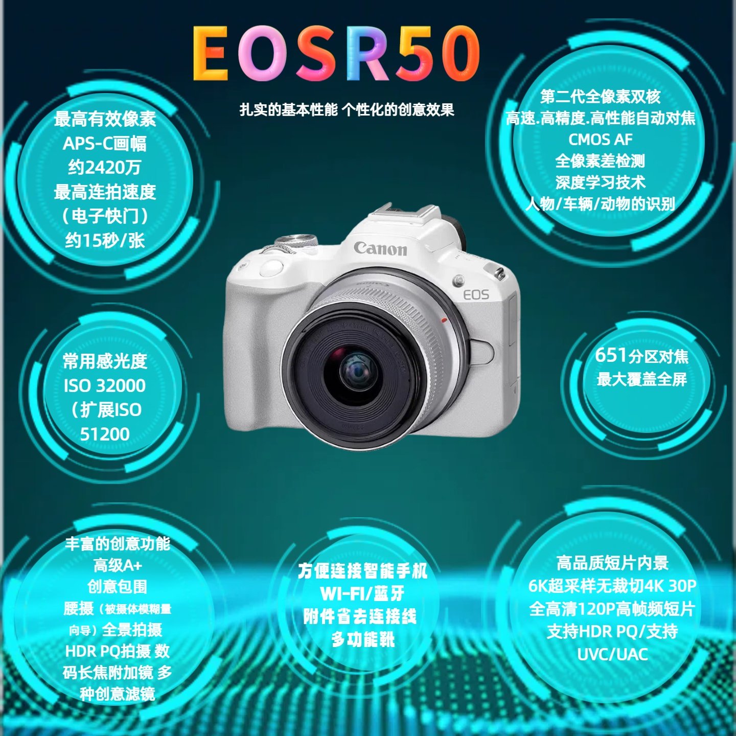 45套机微单相机4K视频高清旅游数码 Canon R50 入门相机 佳能