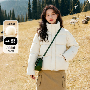 小个子短款 新款 百搭棉袄外套Q 2025冬季 班尼路黑色立领面包服女款