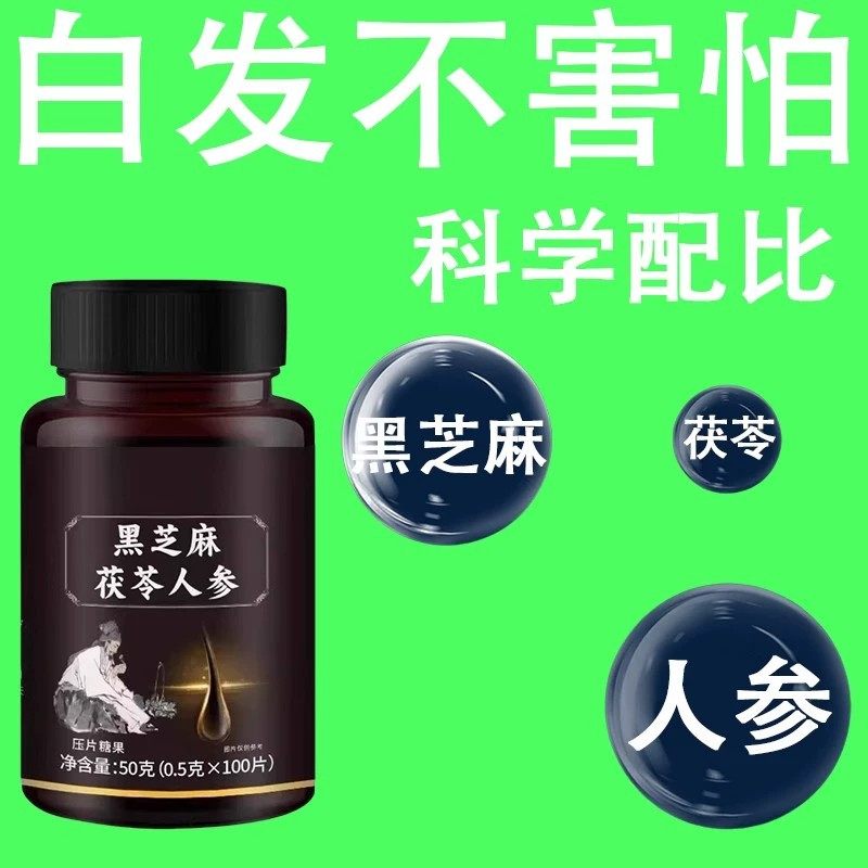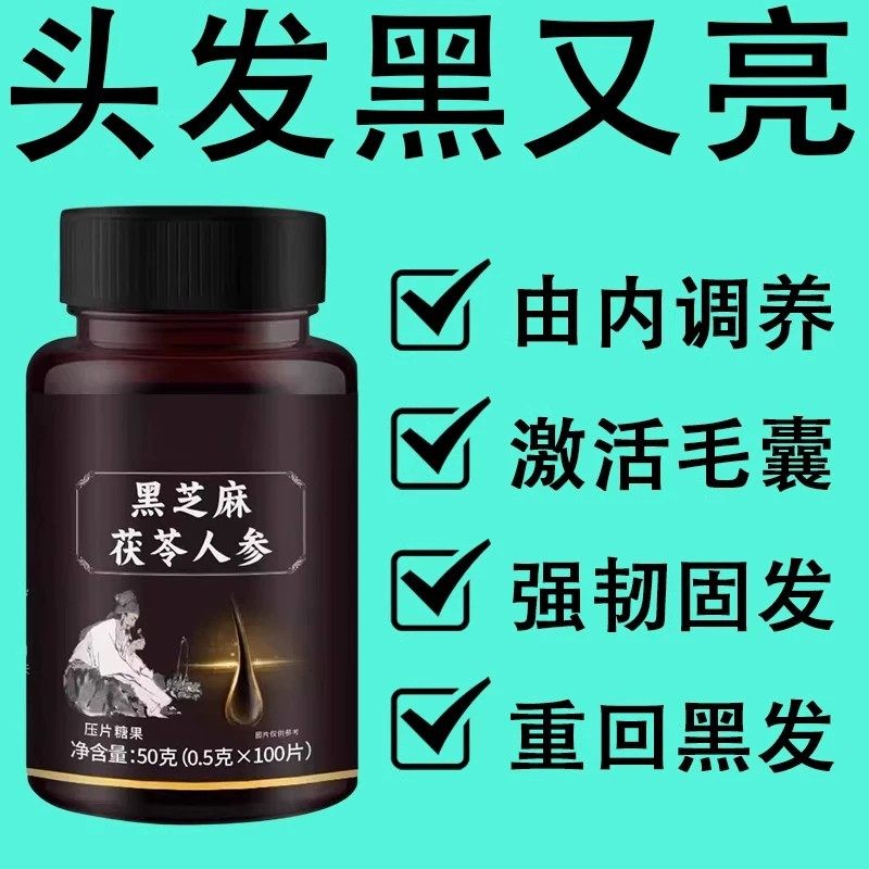 特级片乌发全黑芝麻茯苓人参滋补片头发白发 满头黑 深入毛囊