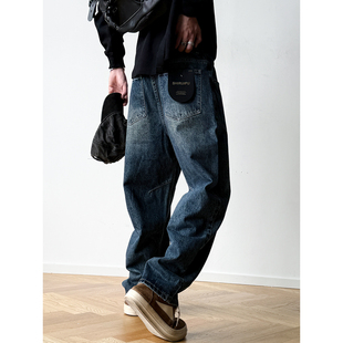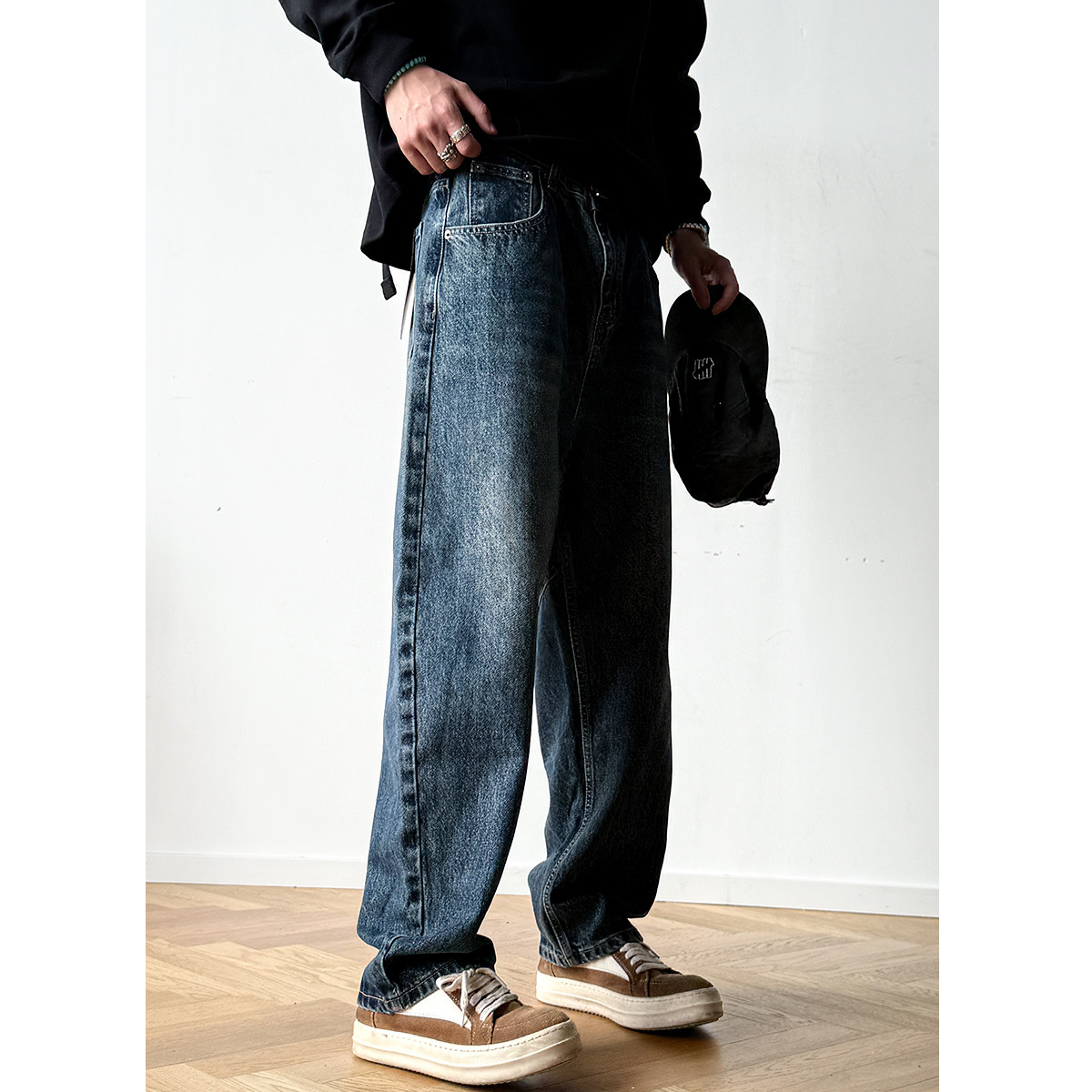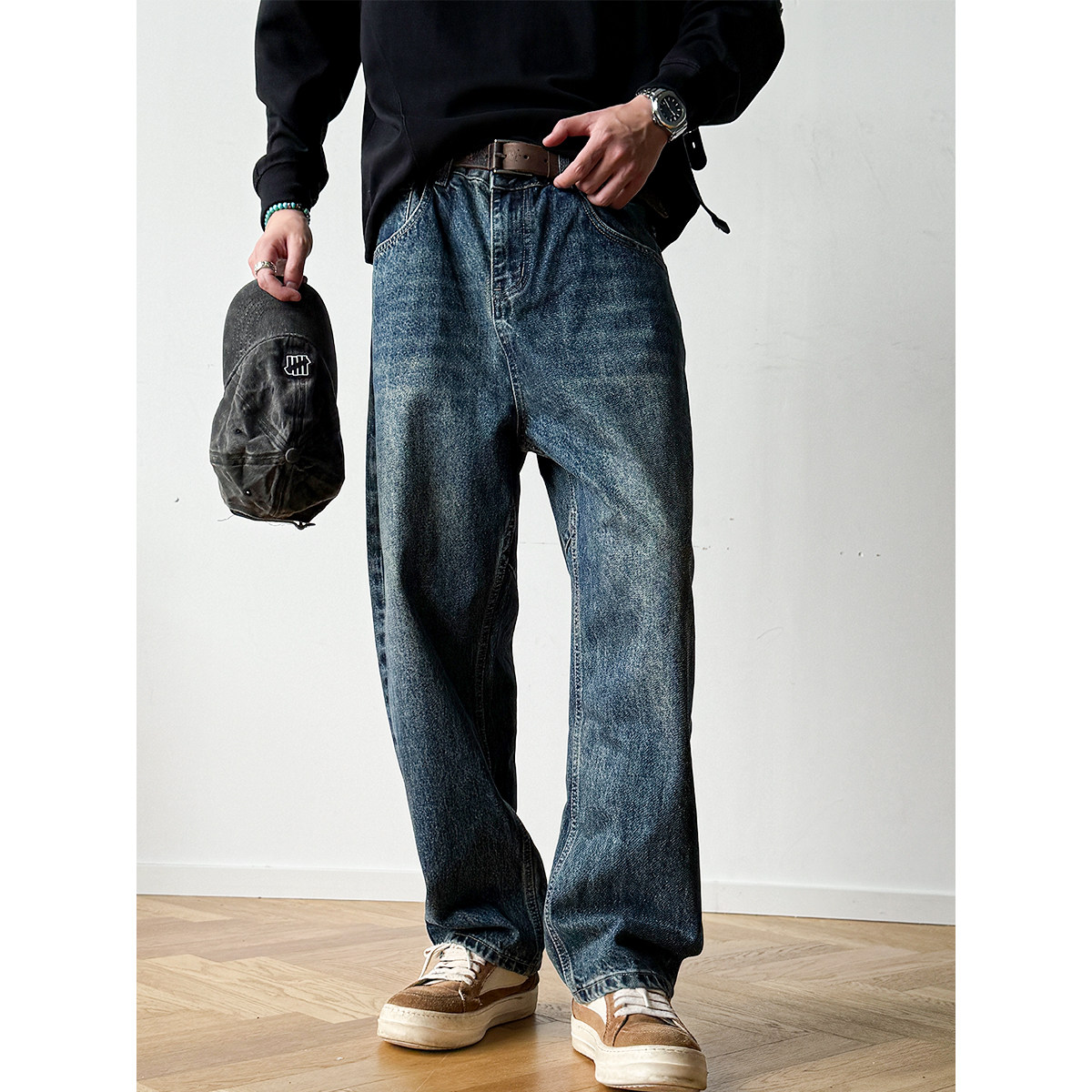 复古阔腿牛仔裤 2025秋冬新款 高街美式 男士 重磅奥粒绒加厚保暖长裤