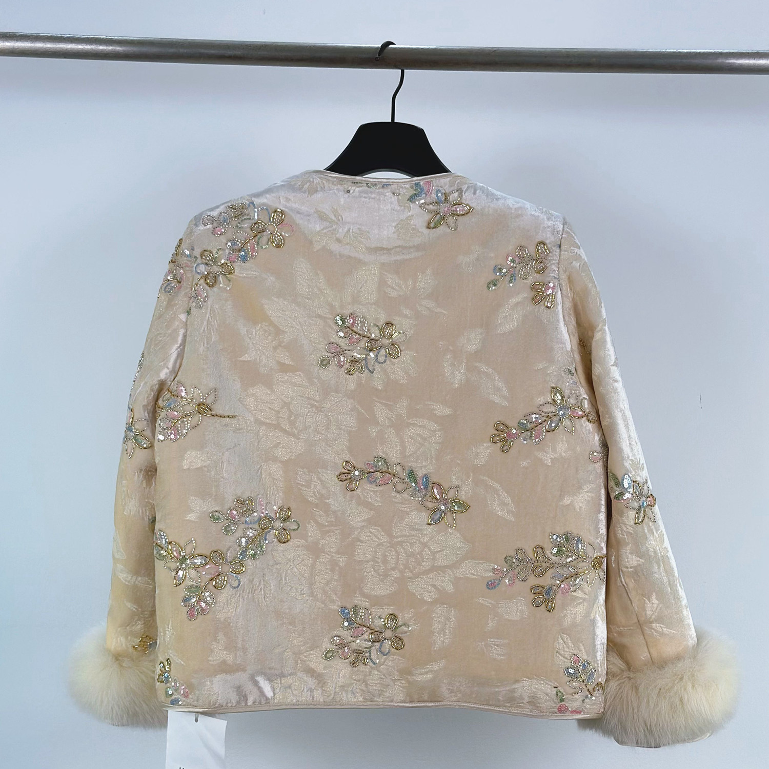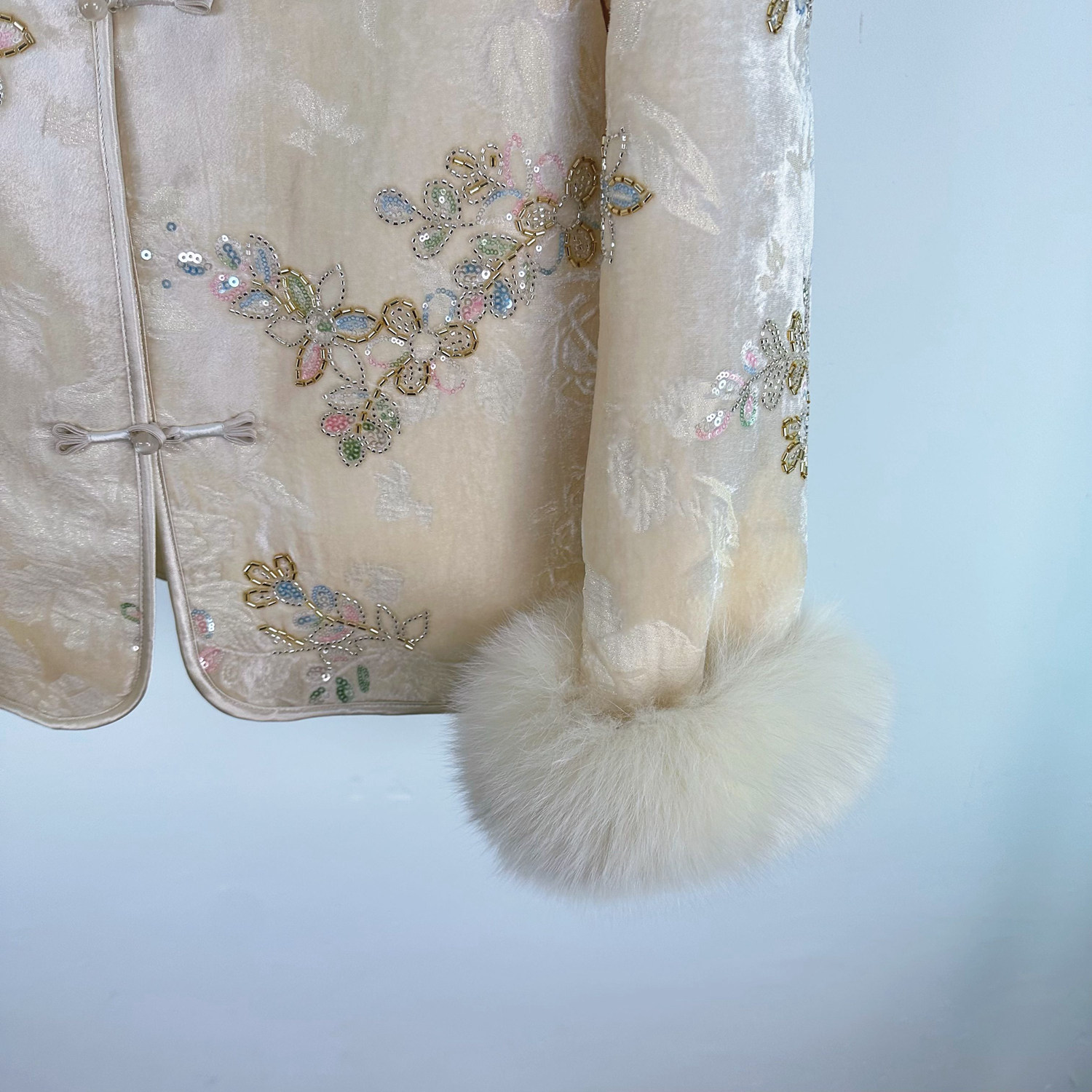 白色灰色毛呢短款 雪国千金真狐狸毛羊毛 原创设计 外套 BLUE