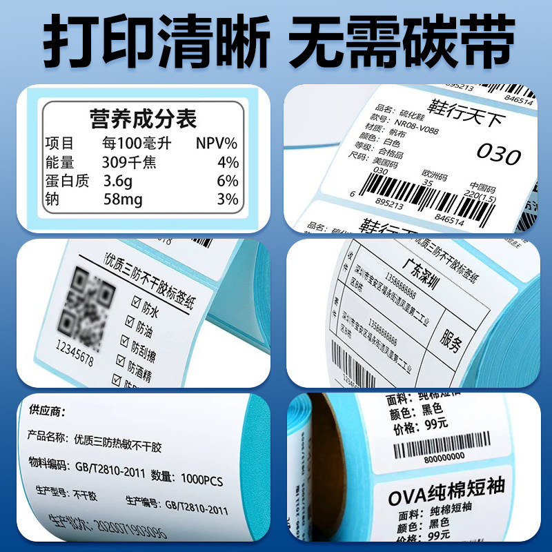 三防热敏标签纸60x40 100x100条码 打印机空白不干胶贴纸E邮宝快递超市电子秤价格防水防油