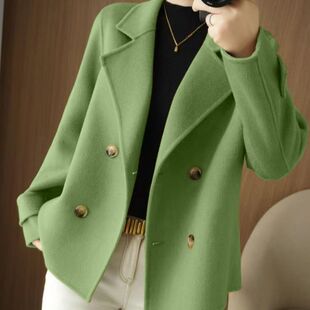 休闲小个子宽松外搭西装 薄款 时尚 新款 领呢子外套 毛呢大衣女春秋季