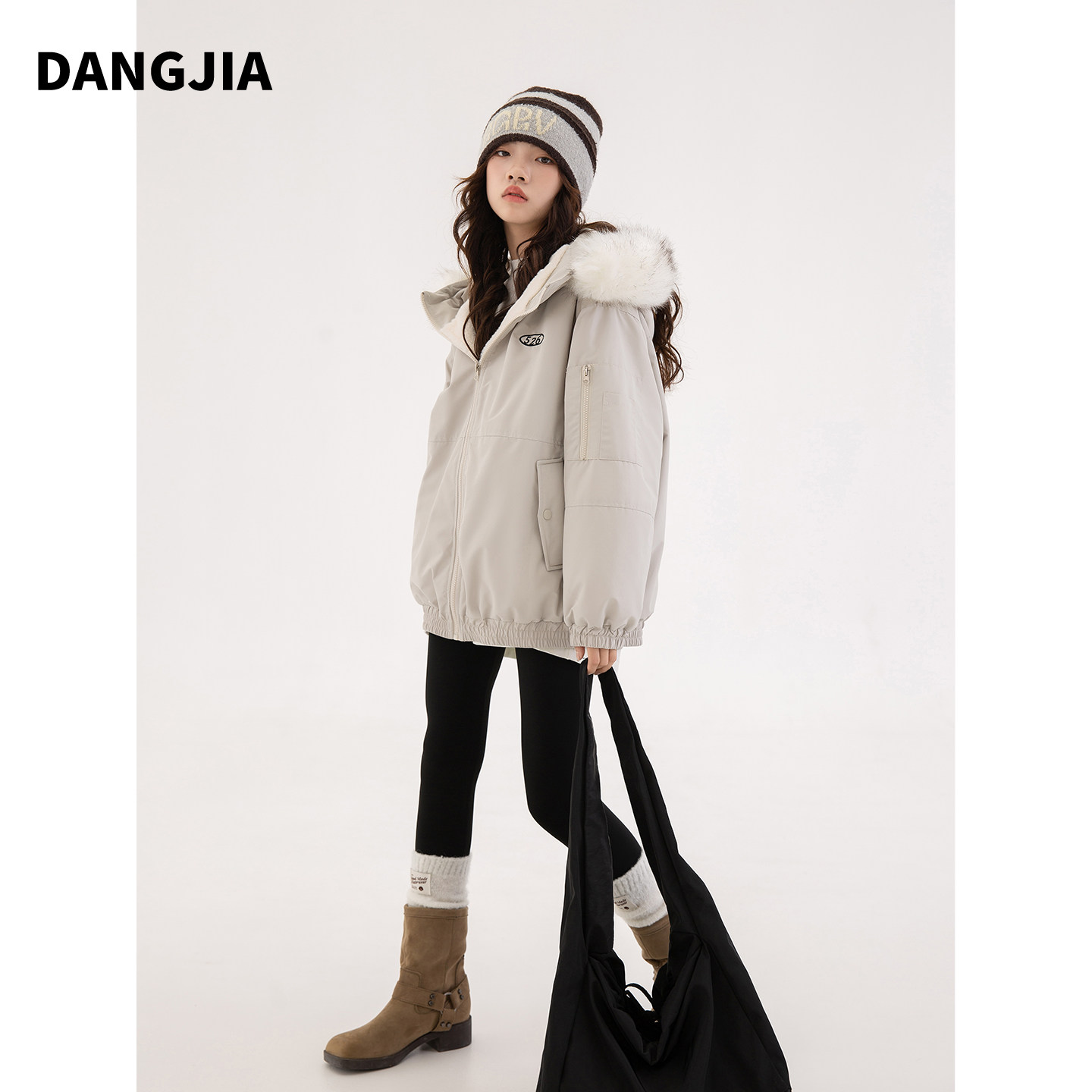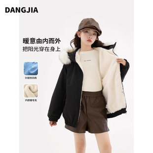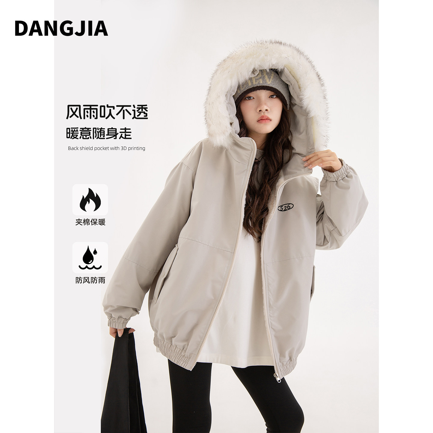 女大童加绒外套2025新款 秋冬儿童加厚保暖棉衣初中生连帽派克服潮