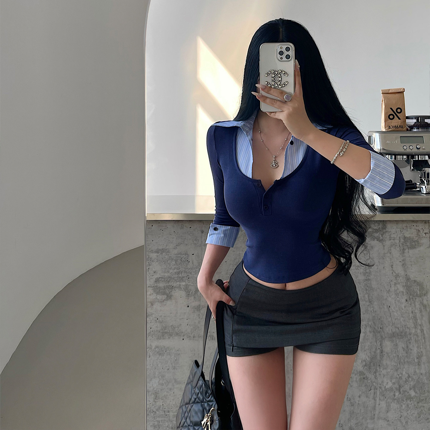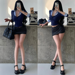 半身短裙裤 YoungGirlDay纯欲性感低腰拉链开叉带安全裤 防走光西装