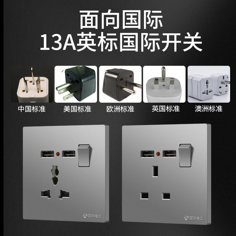 飞利浦86转换插座分控USB快充一转多功能多孔超薄无线带开关插座