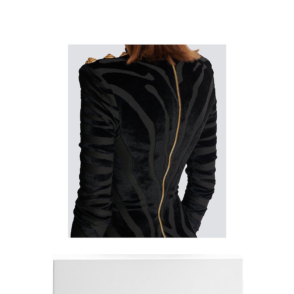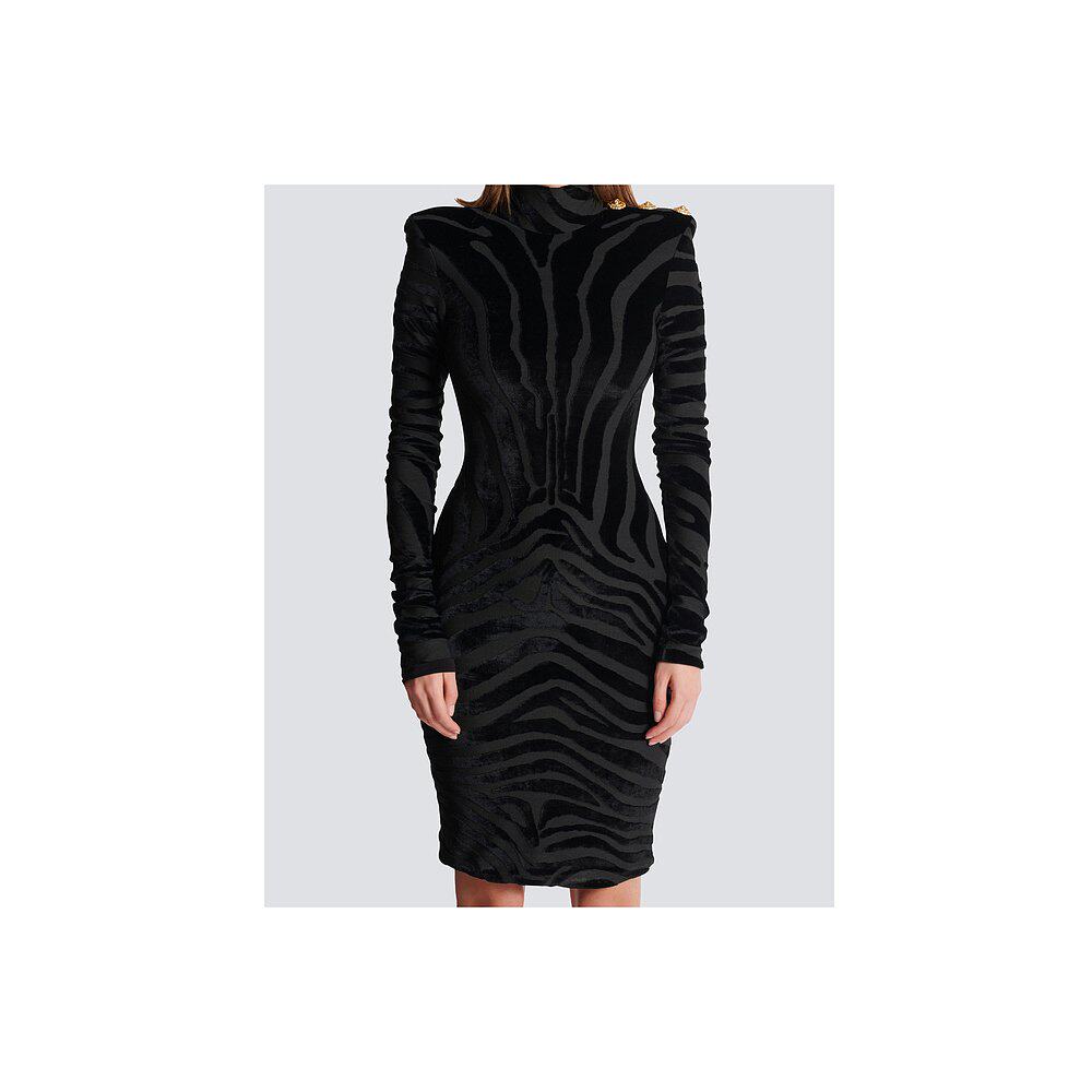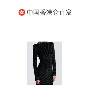修身 香港直邮Balmain FF0RF075JL11长袖 连衣裙 高领 斑马纹短款