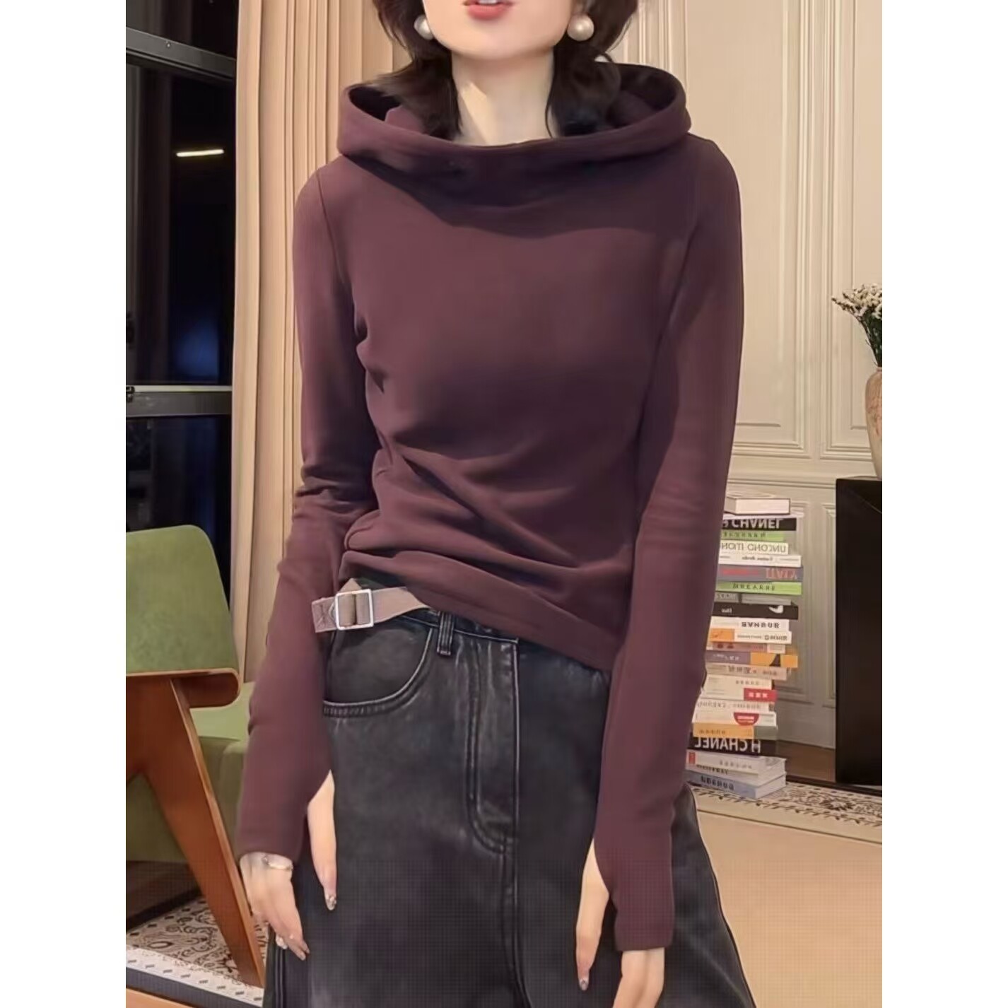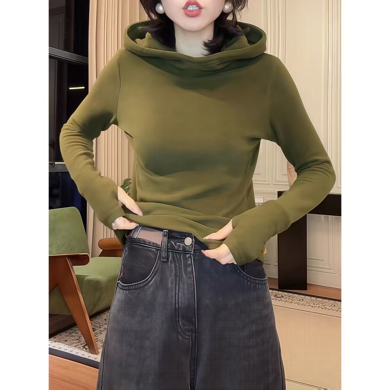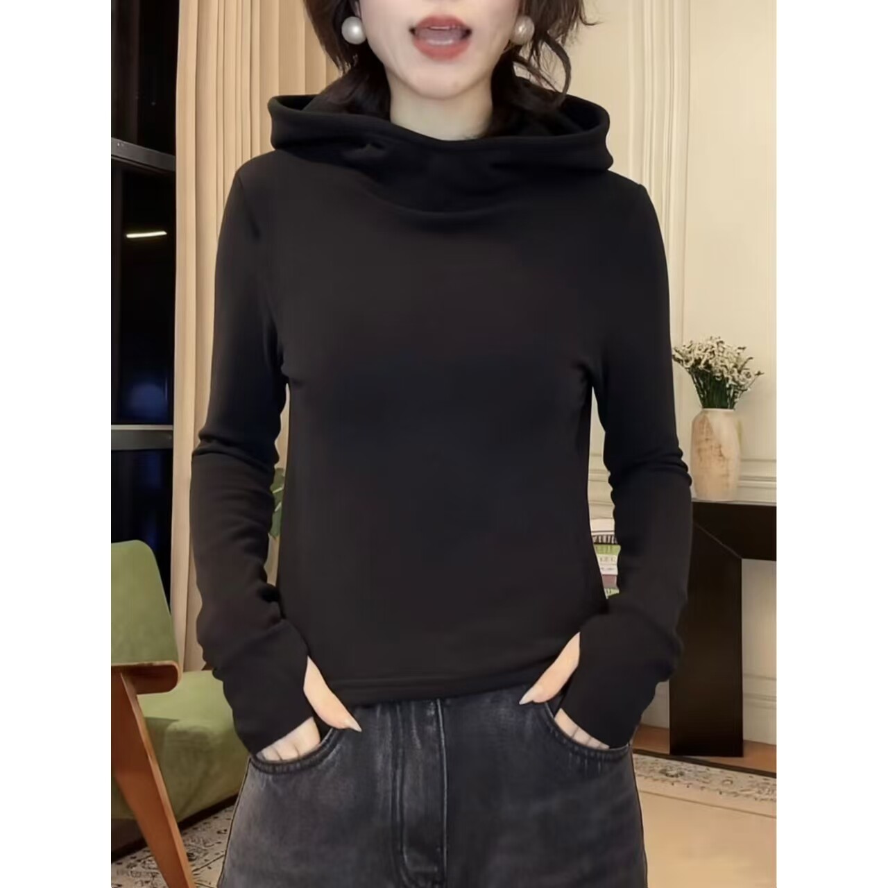 简约加厚双面德绒纯色连帽长袖 百搭休闲保暖上衣潮 卫衣女春秋新款