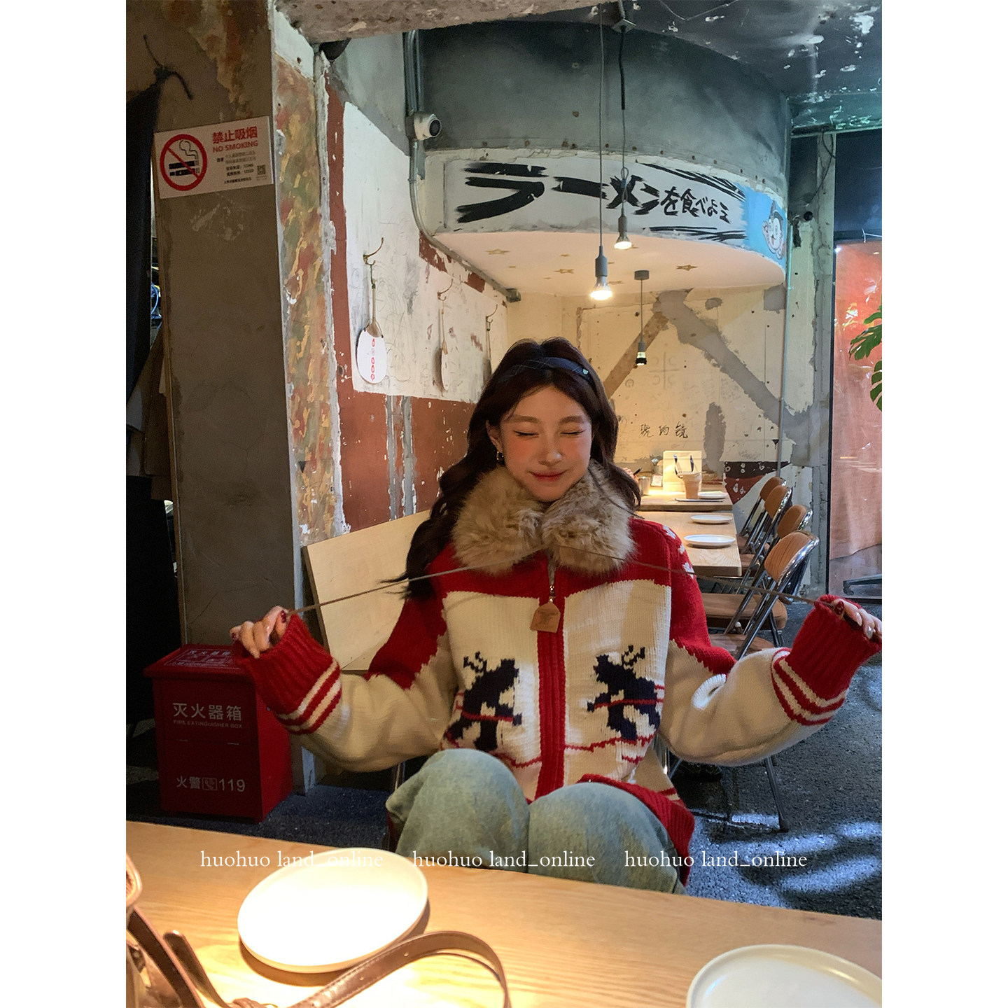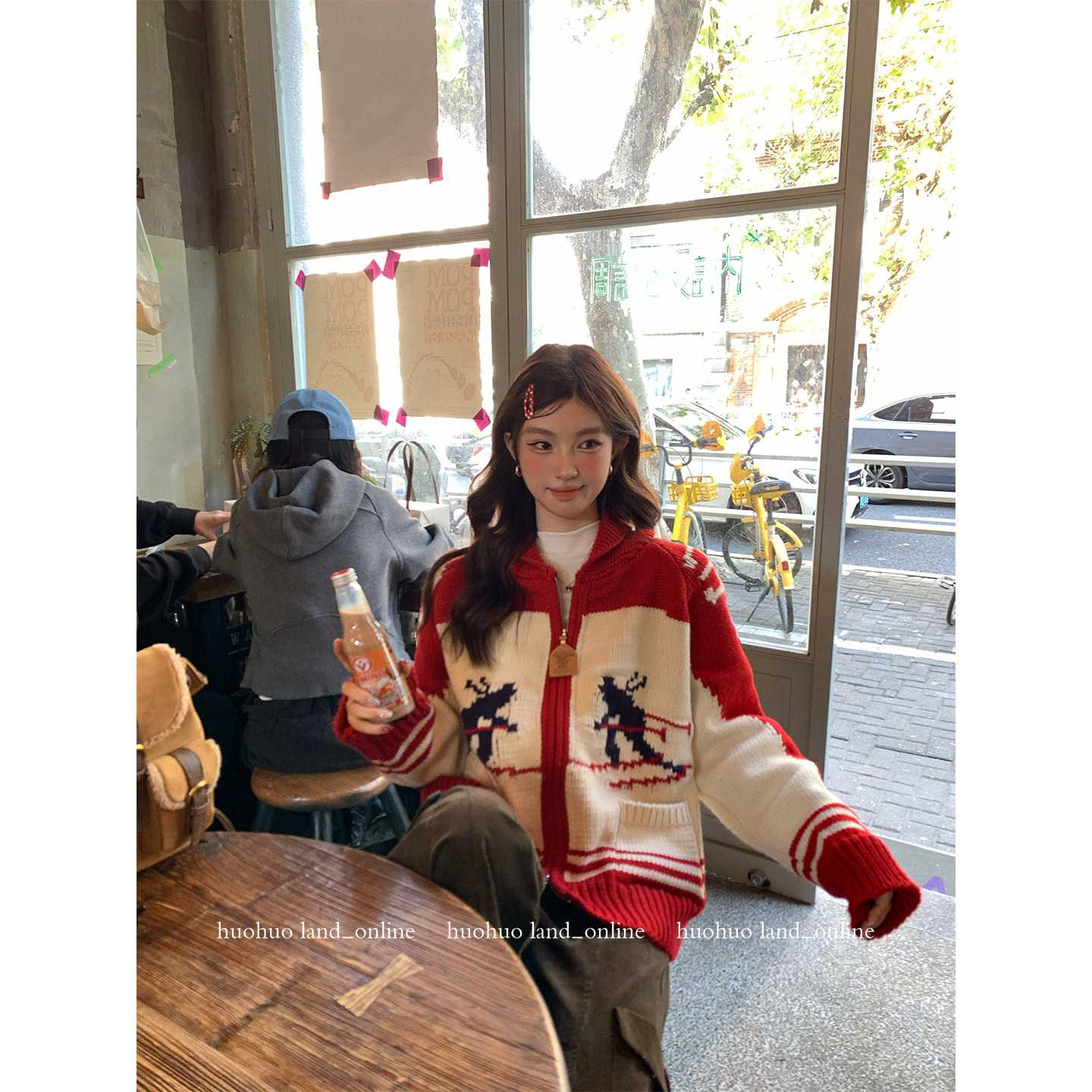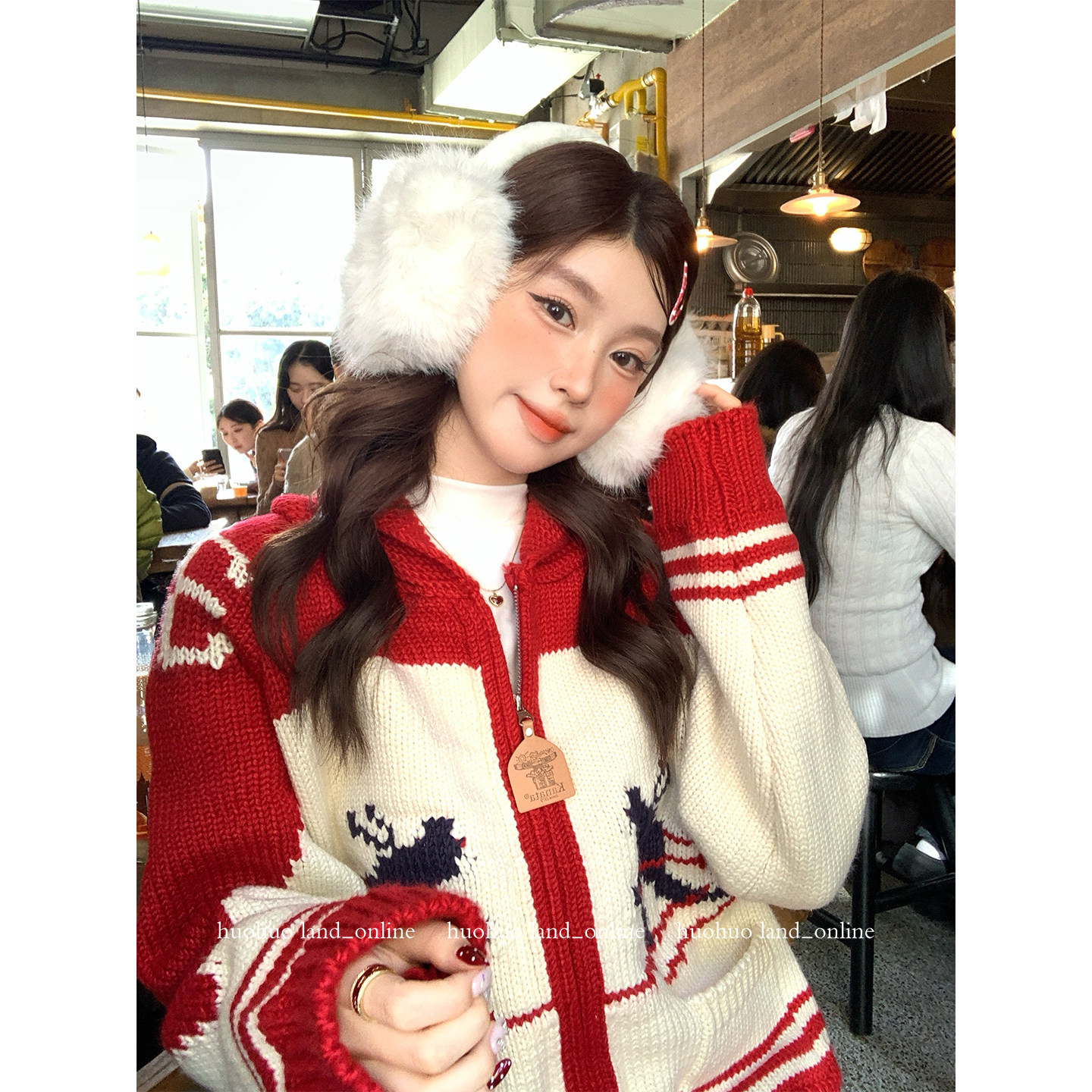 女滑雪提花针织开衫 HuoHuo 新款 北欧氛围 宽松毛衣外套 圣诞来电