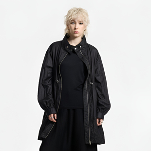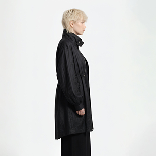 立领风衣外套 配腰带夹棉秋冬毛呢长款 PMET 多形态翻领毛呢大衣