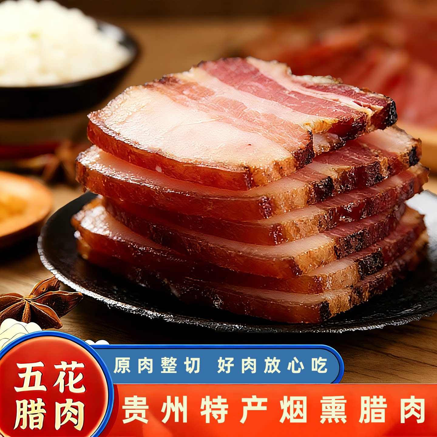 贵州腊肉土特产农家松柏枝烟熏腊肉精品后腿肉五花腊肉500g袋装