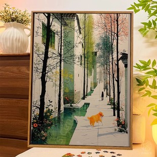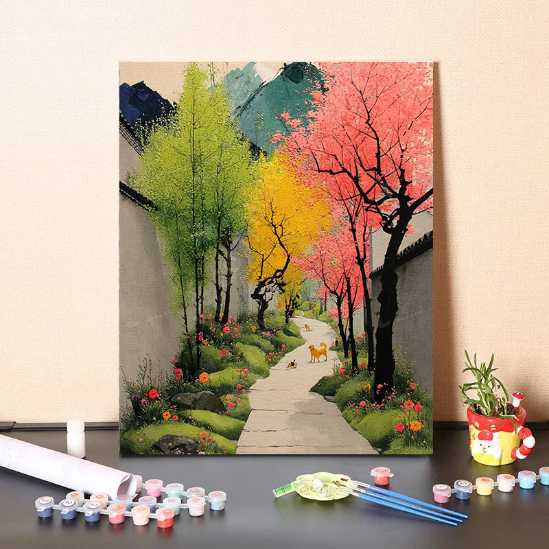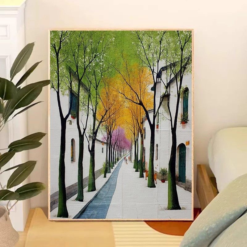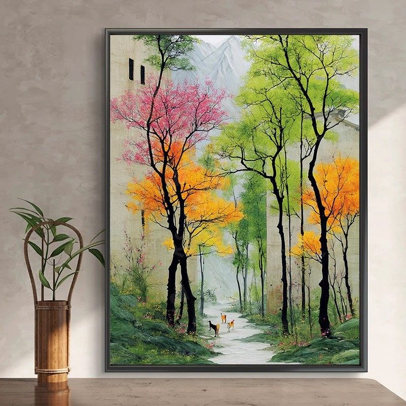 斑斓小径装 唯美餐厅卧室客厅挂画 饰画成品仿油画风景树国风新中式