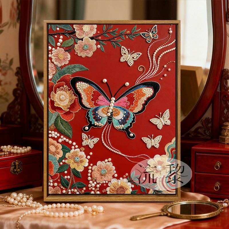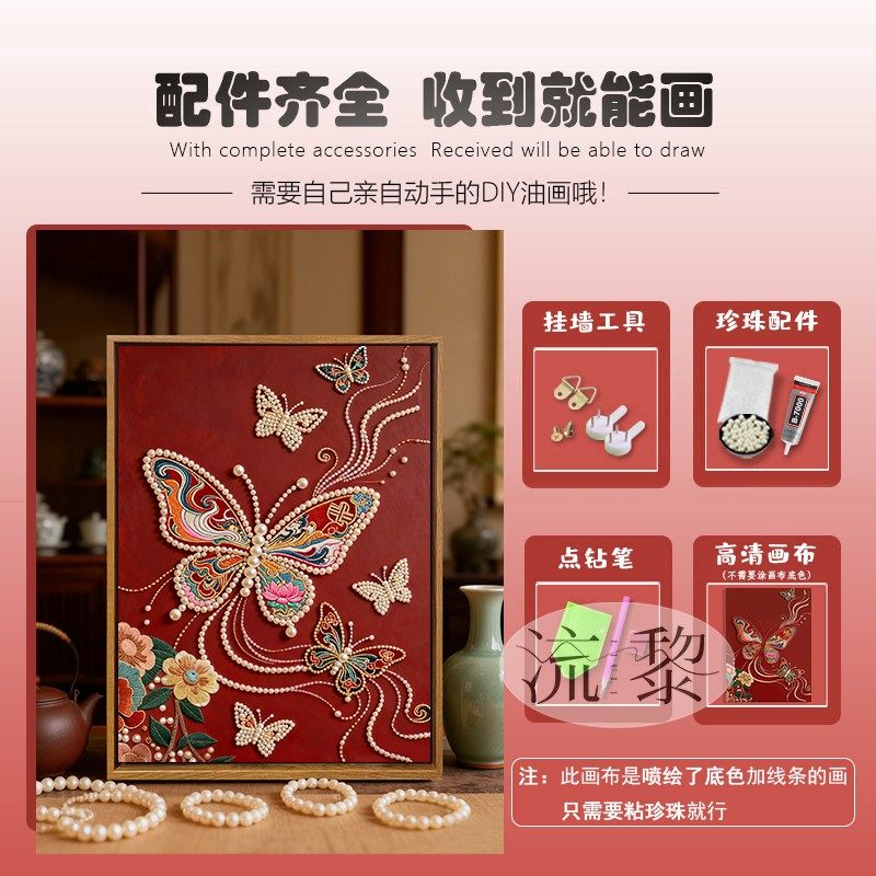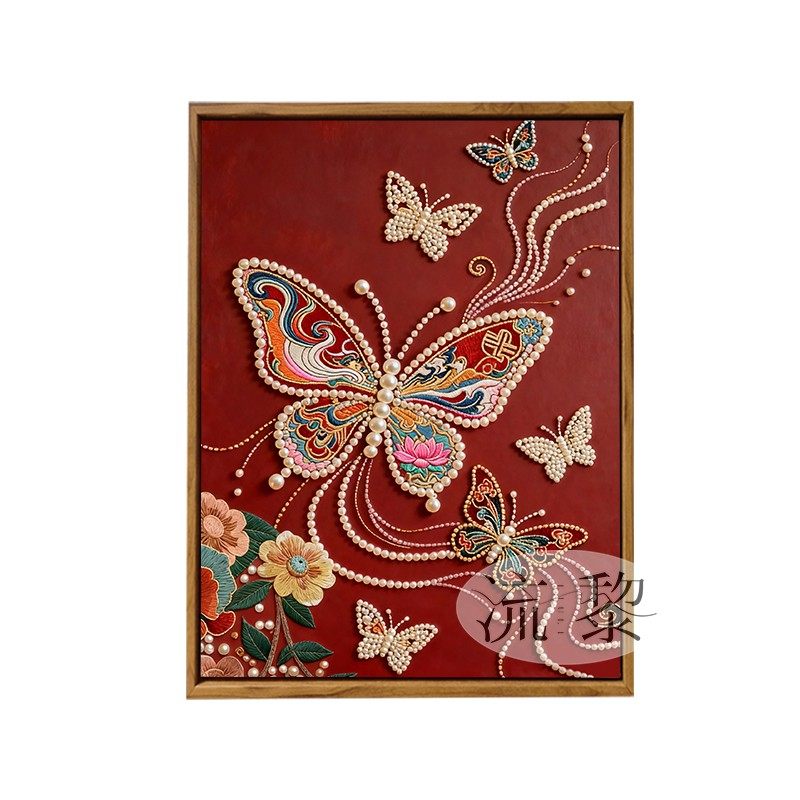 中国风敦煌蝴蝶珍珠画DIY材料全套手工活动宋锦高级感客厅装 饰画