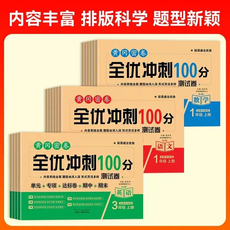 专项期中期末冲刺卷 6年级一二三四五六年级上册试卷测试卷全套语文数学英语同步练习册单元 全优冲刺100分测评卷黄冈人教版 小学1