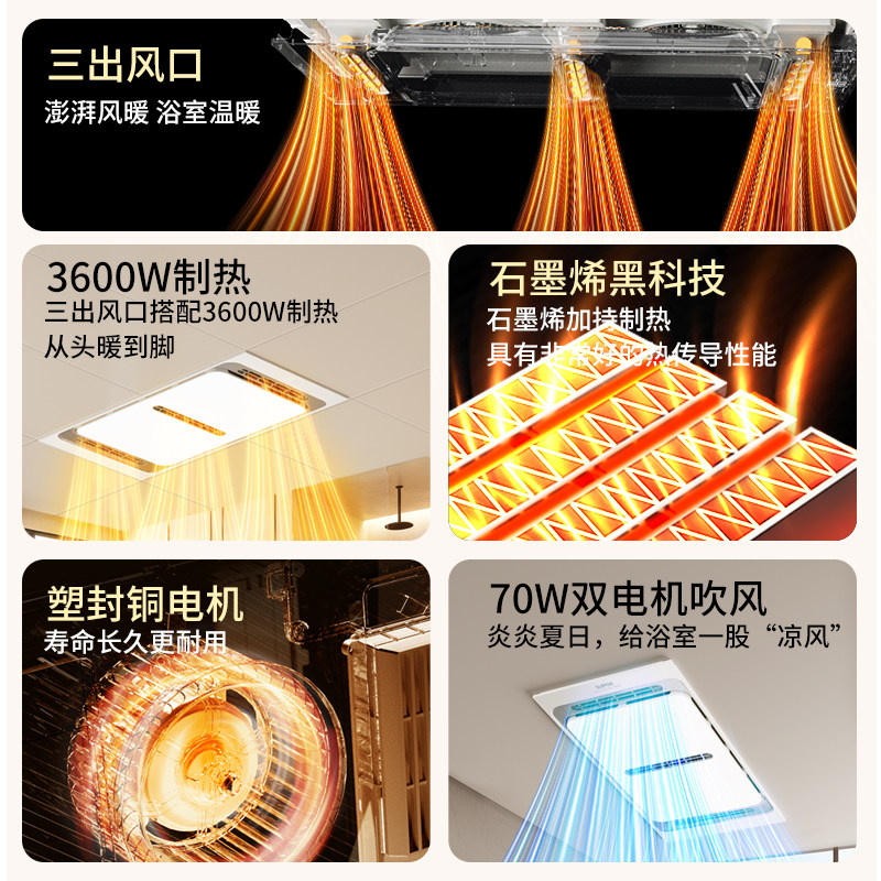 苏泊尔风暖浴霸灯排气扇照明一体浴室取暖多功能暖风机三暖浴霸