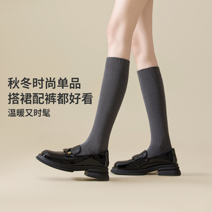 配靴子防滑不掉长筒袜 纯棉保暖加厚2025新款 小腿袜子女款 秋冬季