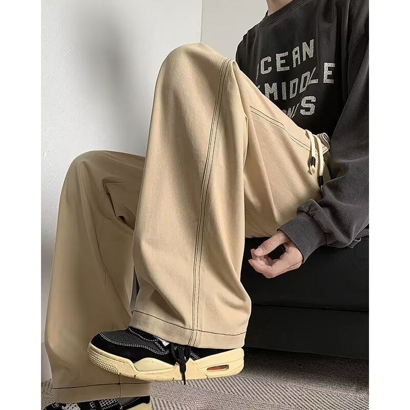 高街潮牌百搭直筒裤 卡其色工装 复古慵懒阔腿长裤 男冬美式 子 休闲裤