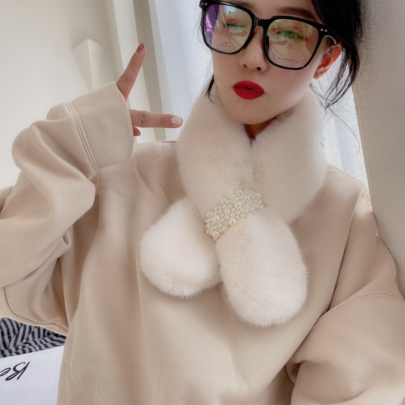 柔软毛毛毛绒围巾韩版 贴标日系秋冬ins少女围脖仿獭兔毛加厚交叉