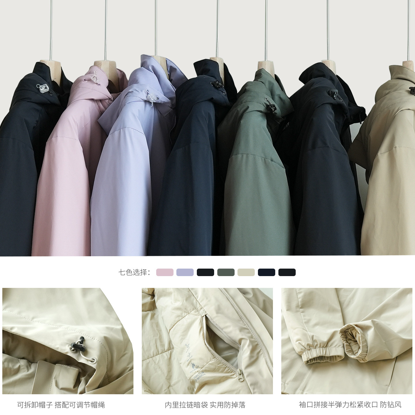 女士保暖夹棉休闲外套 加厚立领可拆卸连帽棉服 冬k 男士 情侣款