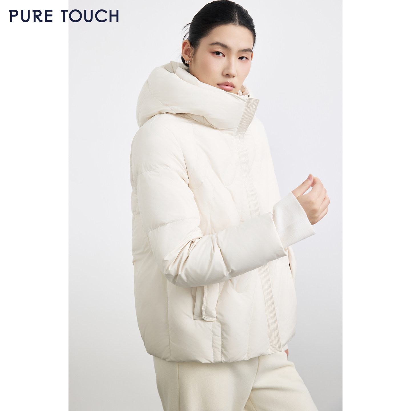 25秋冬连帽鹅绒服短款 TOUCH女装 宽松白鹅绒羽绒服 PURE 商场同款