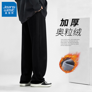 男黑色运动休闲裤 GV真维斯加绒裤 奥粒绒加厚保暖卫裤 冬季 子男款