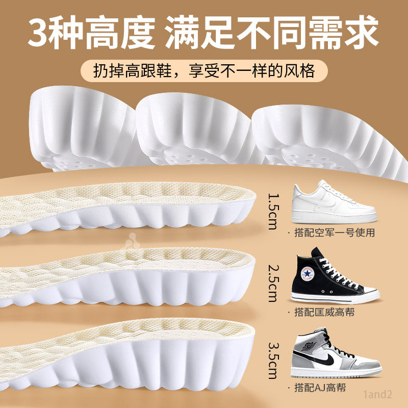 增高鞋 运动气垫减震增高垫男内增高不塌陷女 垫防臭隐形不累脚男士
