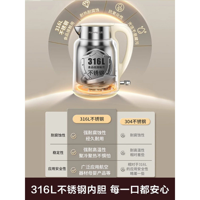 九阳烧水壶养生电热水壶家用多功能保温炖煮一体茶壶煮茶器烧水壶